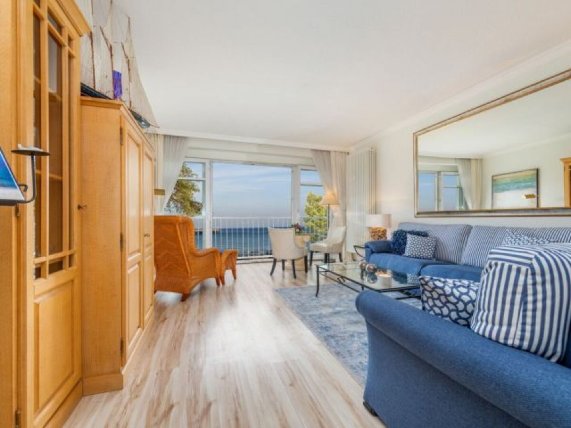 sehr großer Wohnraum mit atemberaubendem, unmittelbarem Meerblick