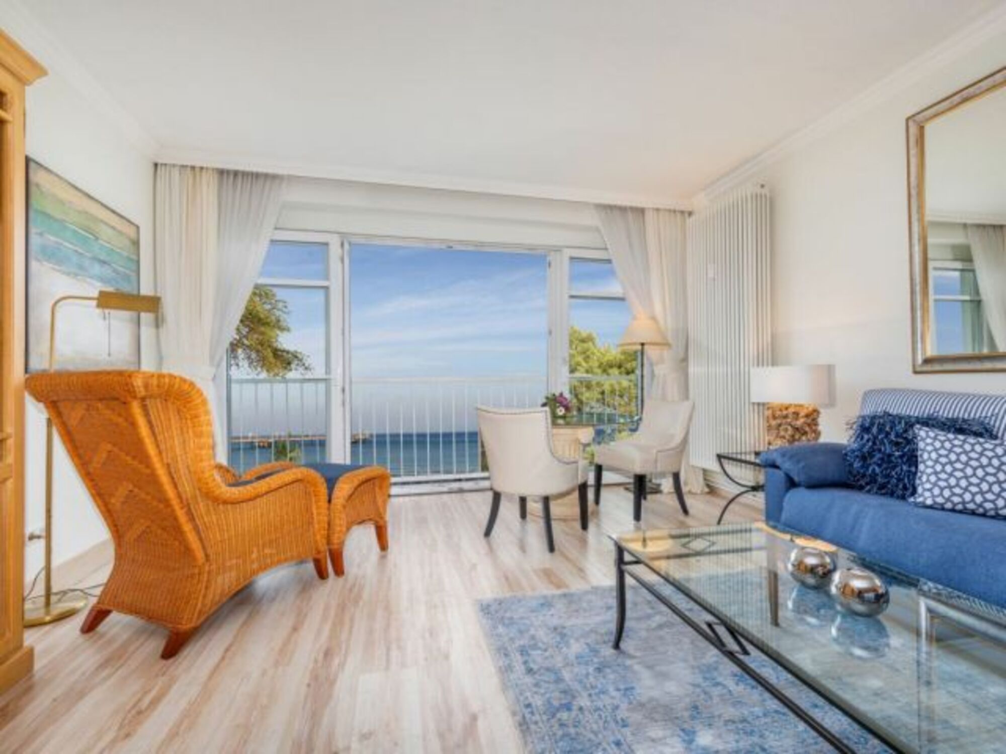 MEERESZAUBER – (86qm, 2 Schlafzimmer) Eine zauberhafte, hochwertig ausgestattete Ferienwohnung , die durch Ihre Traumlage (ganz oben im vorspringenden Turmteil der Villa Freia) besticht.