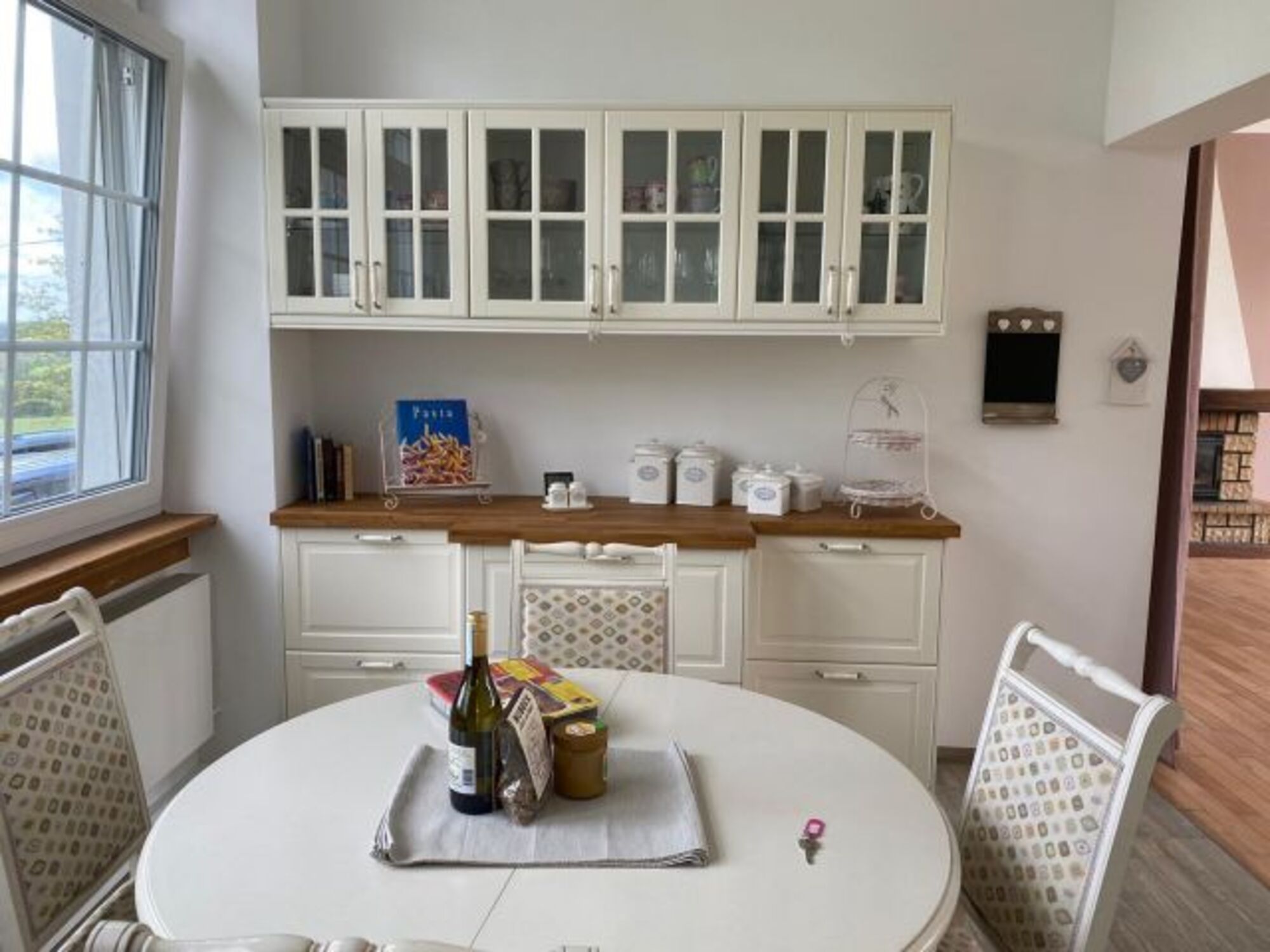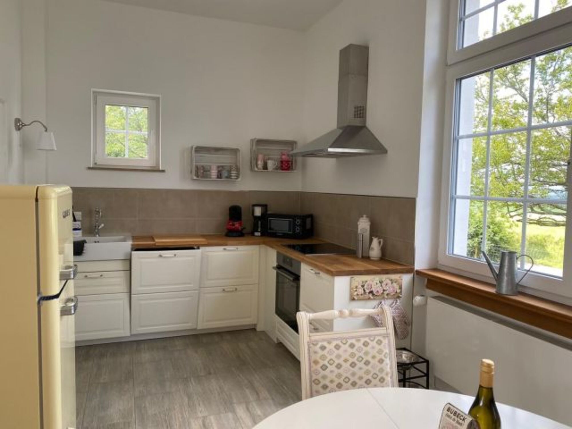 Cerankochfeld, Dunstabzugshaube, Gefrierschrank, Mixer, Korkenzieher / Flaschenöffner, Gewürze (Salz, Pfeffer, Zucker), Öl / Essig, Essplatz in der Küche