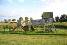 Außenausstattung: große Terrasse, eingezäunter Garten, Gartenmöbel, Sonnenschirm, Liegen, Grill, PKW-Stellplatz, Sandkiste, Gemeinschaftsspielplatz der Ferienhäuser Luna Neptun und Poseidon