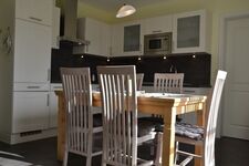 Cerankochfeld, Dunstabzugshaube, Kühlschrank mit Gefrierfach, Korkenzieher / Flaschenöffner, Essplatz in der Küche
