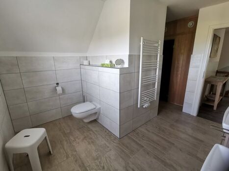 Im anderen Endhausteil , im Norderhüs, befindet sich im EG für unsere Gäste ein separater Raum mit Waschmaschine, Trockner und einer Hundedusche. Ansonsten wird dieses Hausteil nur von uns privat genutzt.
