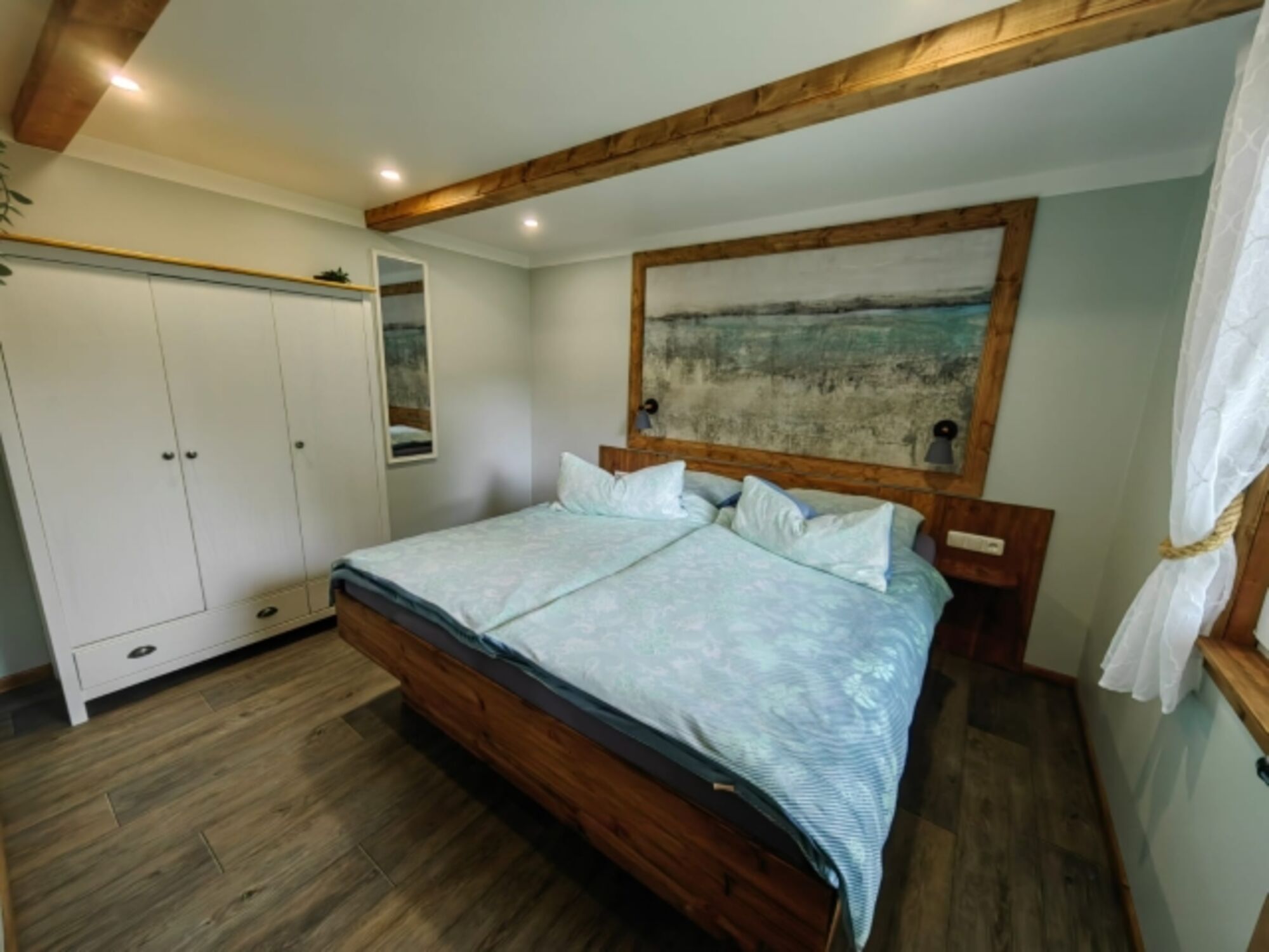 Doppelbett 1,80 x 2,00m, Spiegel, Leselampe am Bett, Fliegengitter