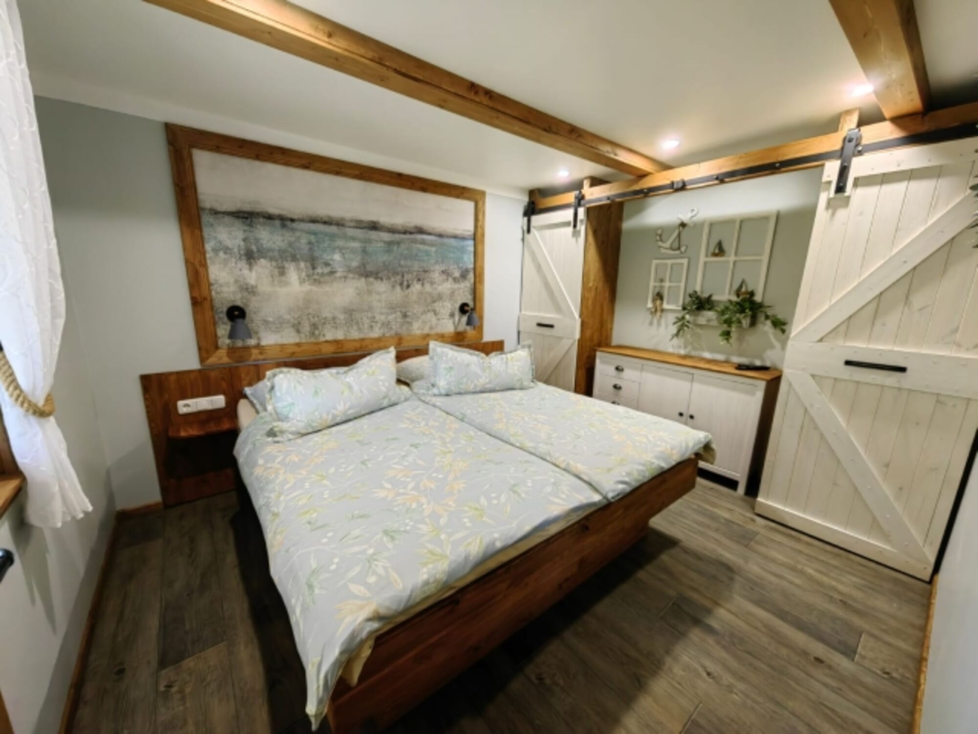 Doppelbett 1,80 x 2,00m, Kommode, Leselampe am Bett, Fliegengitter