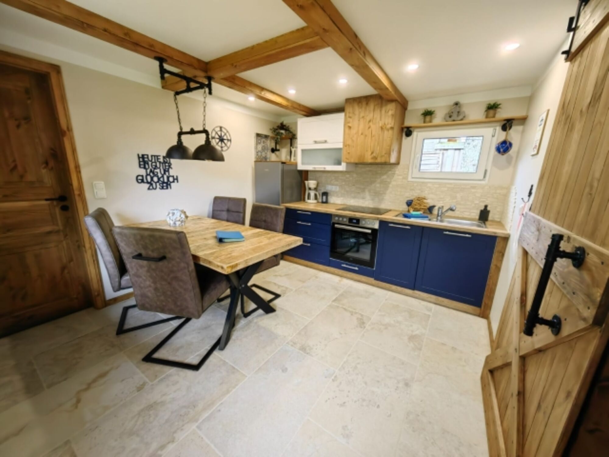 Cerankochfeld, Dunstabzugshaube, Gefrierschrank, Korkenzieher / Flaschenöffner, Geschirrhandtücher, Essplatz in der Küche