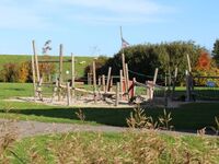 Für die vierbeinigen Urlauber hat Burhave: einen eingezäunten, weitläufigen Hundespielplatz mit Hindernissen, Tunnel und Sandkuhle.