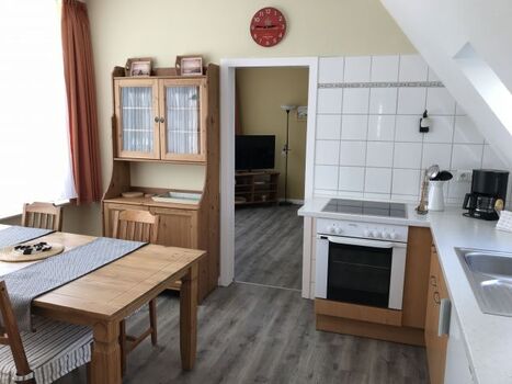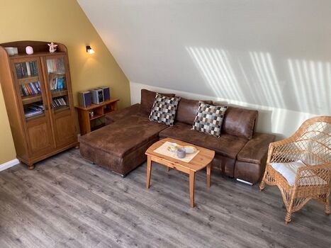Die gemütliche und helle Wohnung ist mit ausgesuchten, massiven Naturholzmöbeln im Landhausstil eingerichtet. Die Fußböden sind mit Fliesen oder Holz ausgelegt. Es gibt keinen Teppichboden. Im Wohnraum befindet sich ein Flat-TV mit Satellitenanschluss. Außerdem steht Ihnen in der Wohnung kostenfrei WLAN zur Verfügung.