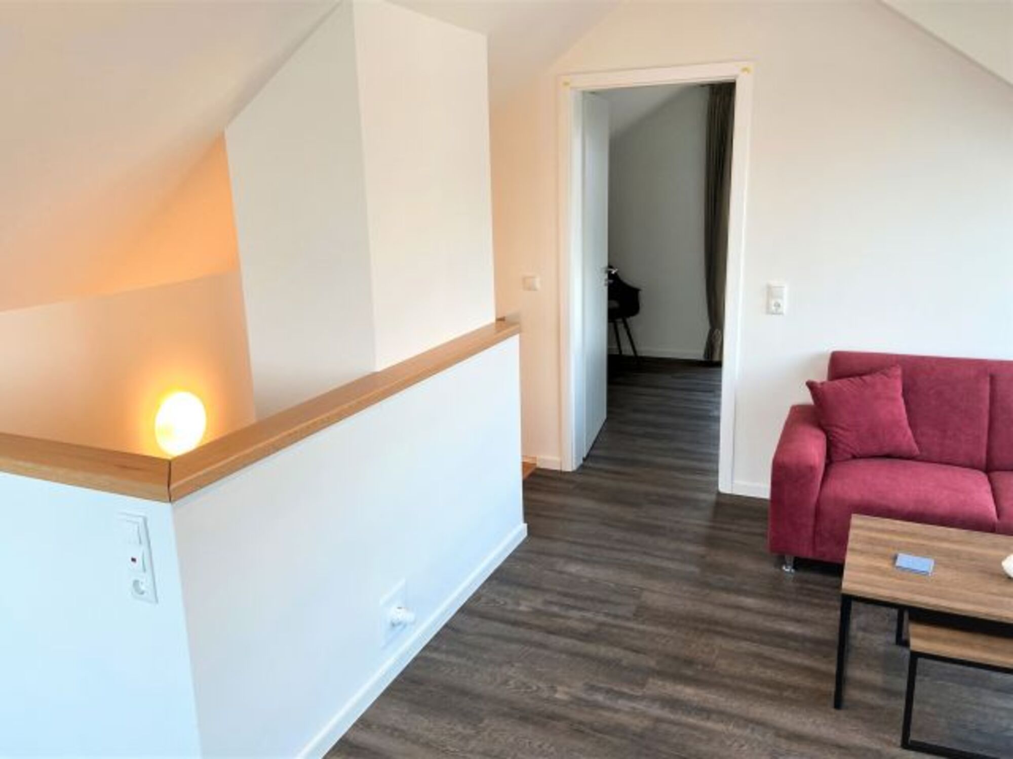 Auch hier bietet eine gemütliche Sofaecke die Möglichkeit zum Entspannen. Ein Fernseher ist hier vorhanden.