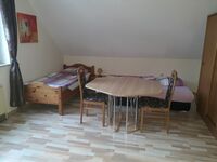 Das Objekt kann bei niedriger Personenzahl geteilt werden. Es besteht einmal aus Küche, Wohnzimmer, ein Schlafzimmer mit Doppelbett und ein Schlafzimmer mit zwei Einzelbetten, DU/WC und einmal aus Wohnküche, ein Schlafzimmer mit Doppelbett und DU mit Doppelbett und DU/WC und ein großes Schlafzimmer mit Doppelbett, Einzelbett, Schlafsofa und DU/WC , jeweils mit eingezäunter Terrasse, Grill und Sitzmöglichkeit und separatem Eingang. Hunde sind willkommen und kostenlos.