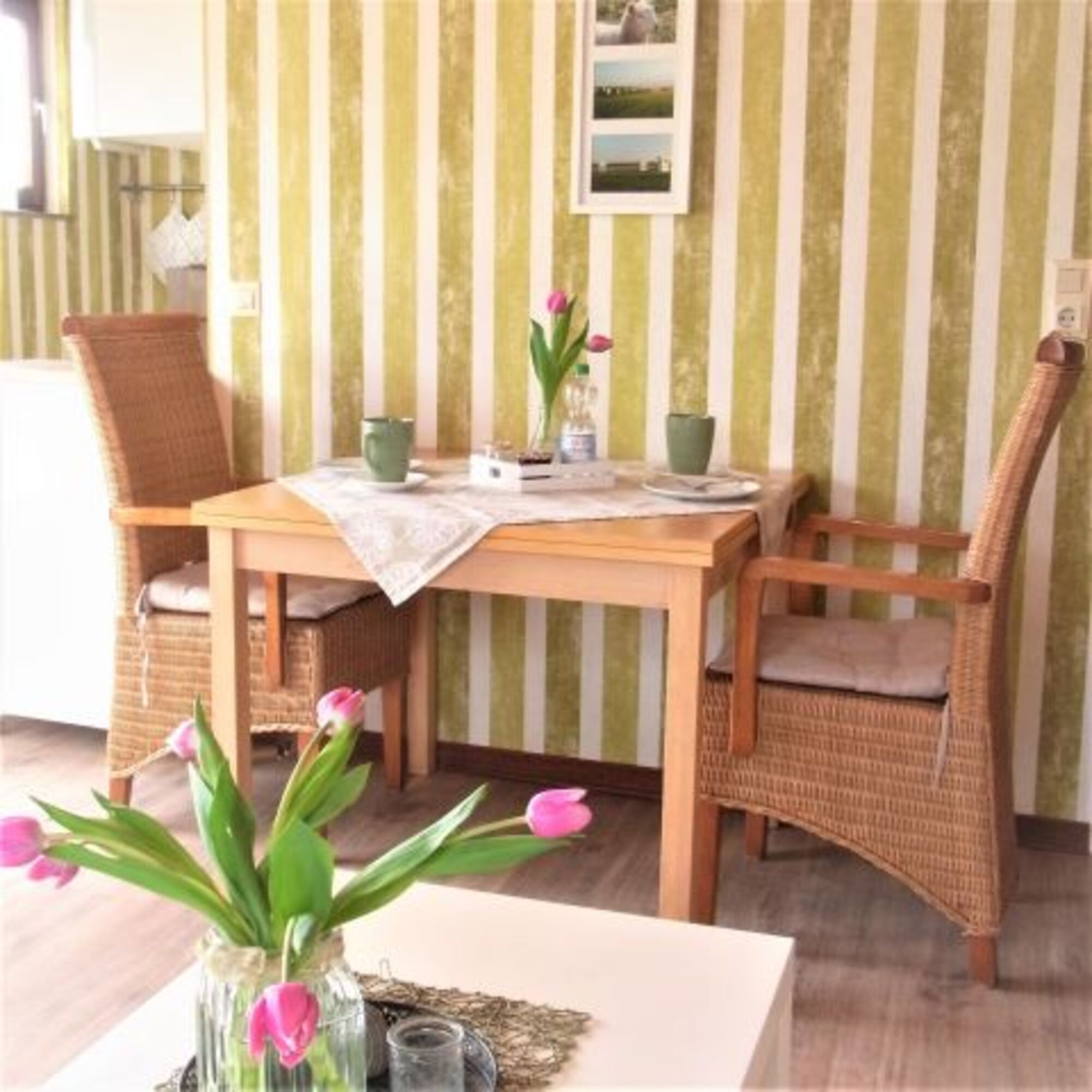 Unsere behagliche seit 2015 renovierte Wohnung ist für 2 große und einen kleinen Menschen genau das Richtige. Die nach Süden ausgerichtete Wohnung befindet sich im 1. OG und hat ein Wohnzimmer zum Entspannen und Wohlfühlen inkl. offener und bestens ausgestatteter Küchenzeile (renoviert 2019) sowie ein behagliches Schlafzimmer dazu ein frisches und modernes Duschbad (renoviert 2019), einen Balkon sowie eine kleine Diele. Ein Kinderbett mit Bettzeug sowie einen Hochstuhl gibt es auf Wunsch kostenlos dazu. Wohlerzogene Hunde sind uns herzlich und nach Absprache willkommen und können mit Ihnen wunderbare Spaziergänge erleben.
