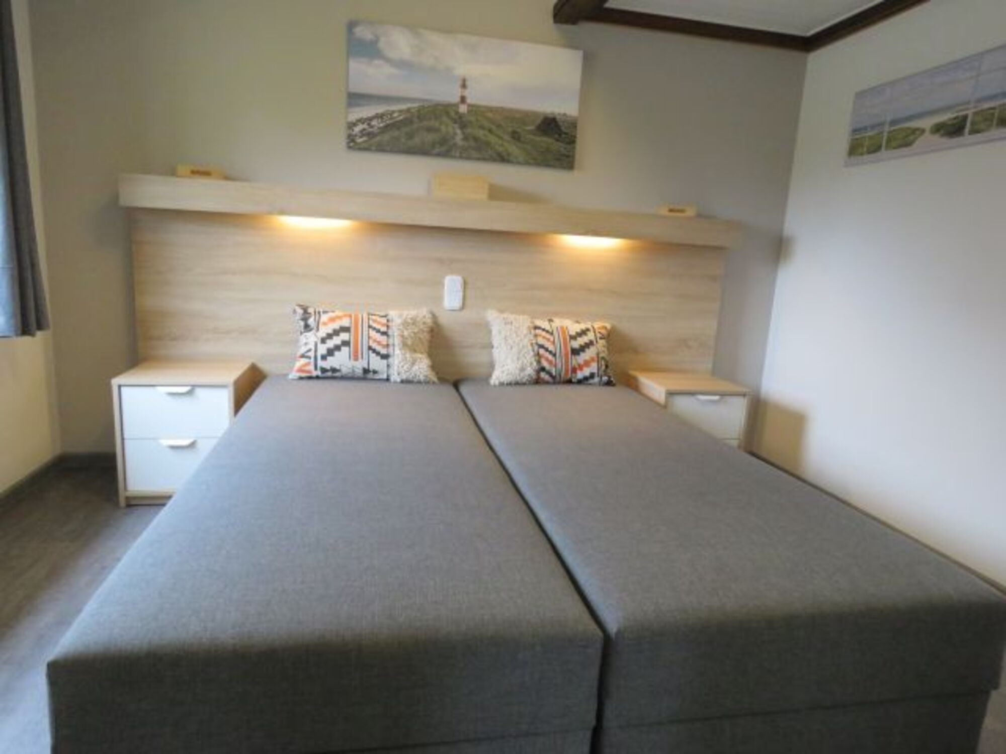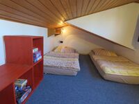 1 Schlafraum mit 2 Betten. 1 Schlafkoje mit 2 Matratzen im Giebel. Das Ferienhaus ist komplett für 4 Personen eingerichtet.