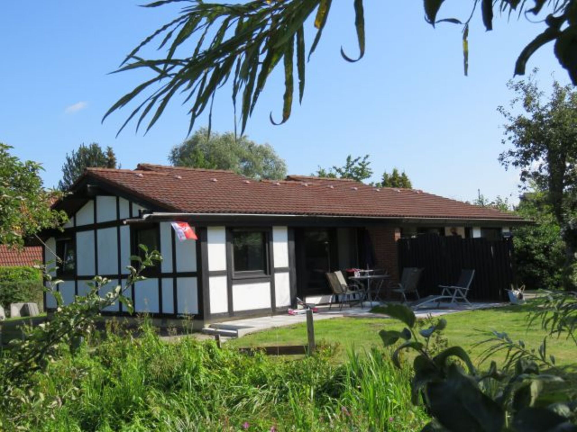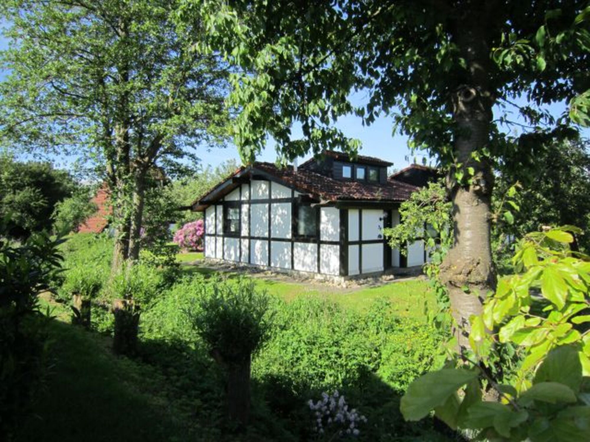 Im Feriendorf Altes Land, direkt am Elbdeich, zwischen Hamburg und Stade. Mitten in einem alten Obsthof, umgeben von tausenden im Frühjahr blühenden Obstbäumen, wartet dieses schöne Ferienhaus auf Sie.