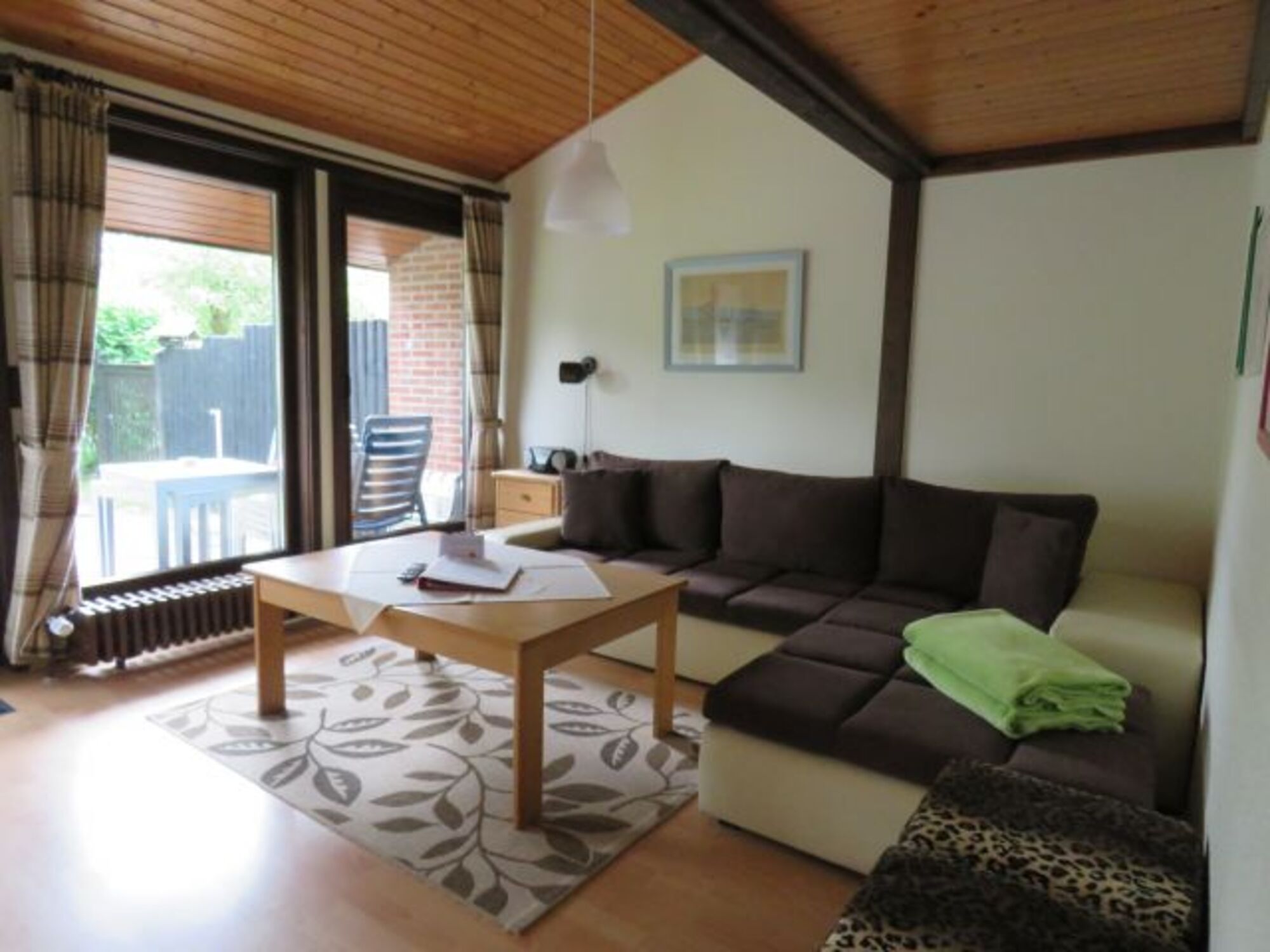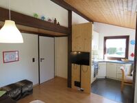 DHH-ca. 42m² Wohn- und Nutzfläche, bis 4 Personen. Wohnraum mit Schlafcouch und Essecke. Küche (4-Plattenberd/Backofen, Kühlschrank/Gefrierfach). Dusche / WC. Diele. Abstellraum. Terrasse.