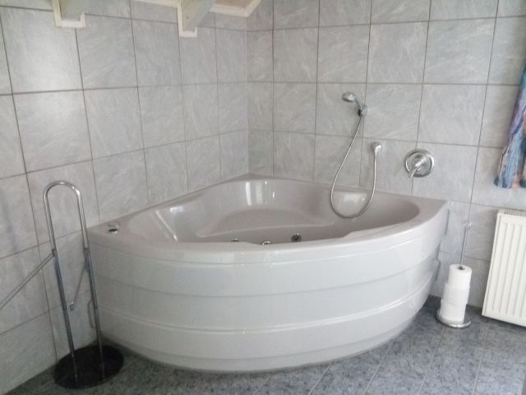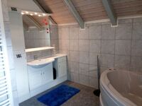 großes Badezimmer mit Eckbadewanne, separate Dusche, WC, Waschbecken