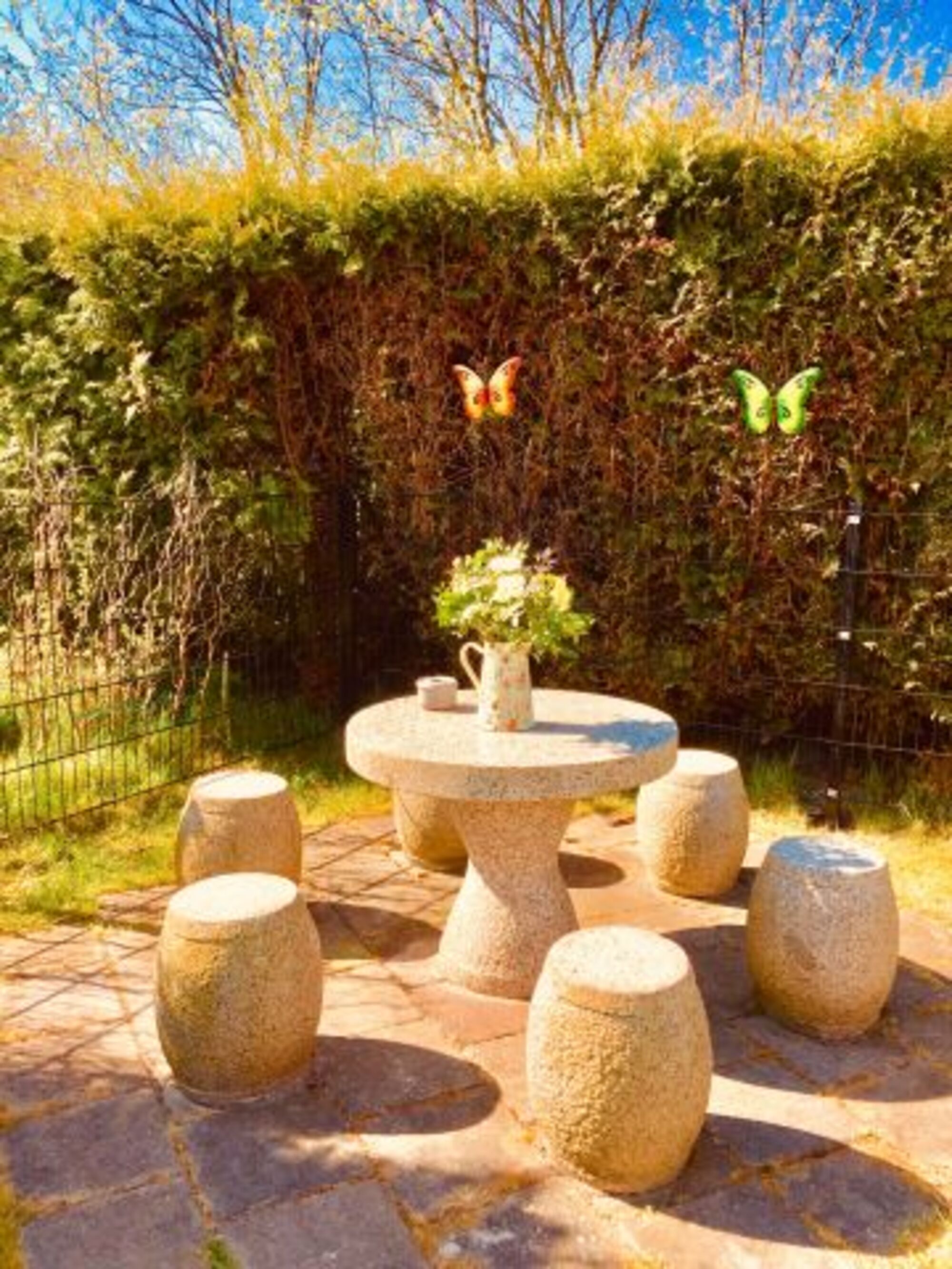 Der nicht einsehbare Garten ist komplett eingezäunt, sodass ihre Vierbeiner im Garten herumtollen können.