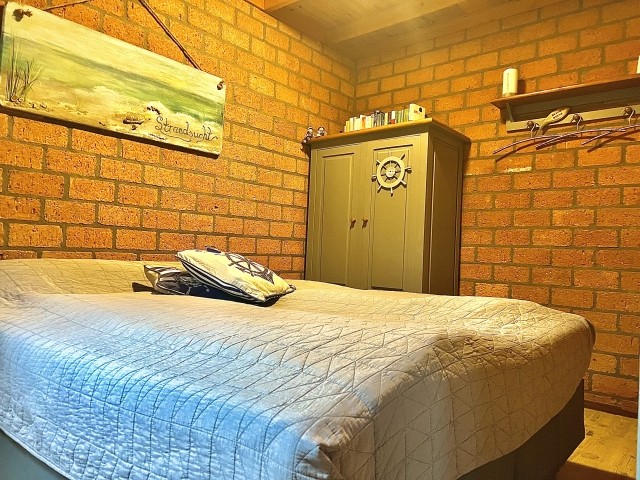 Sie finden 3 Schlafzimmer. Ein Schlafzimmer mit 2 Betten, ein weiteres mit einem Etagenbett und das dritte Schlafzimmer hat ein Einzelbett.