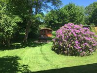 Ihre Hunde können von der Wohnung aus direkt in den eingezäunten Garten der Ferienwohnung. Hier steht Ihnen eine gemütliche Gartenhütte mit Veranda, sowie ein Kamin und ein Grill zur Verfügung. Genügend Sitz- und Liegemöglichkeiten sind für entspannte Stunden vorhanden.