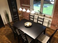 Cerankochfeld, Dunstabzugshaube, Kühlschrank mit Gefrierfach, Senseo-Kaffeeautomat, Mixer, Korkenzieher / Flaschenöffner, Geschirrhandtücher, Essplatz in der Küche