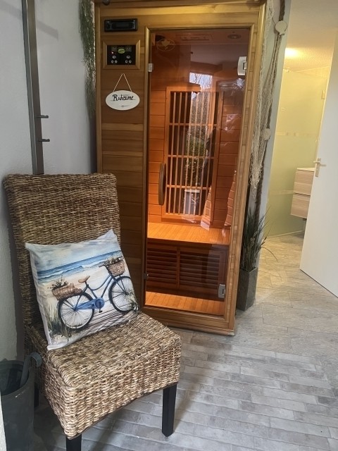 Neben dem Badezimmer finden Sie eine Infrarot Sauna.