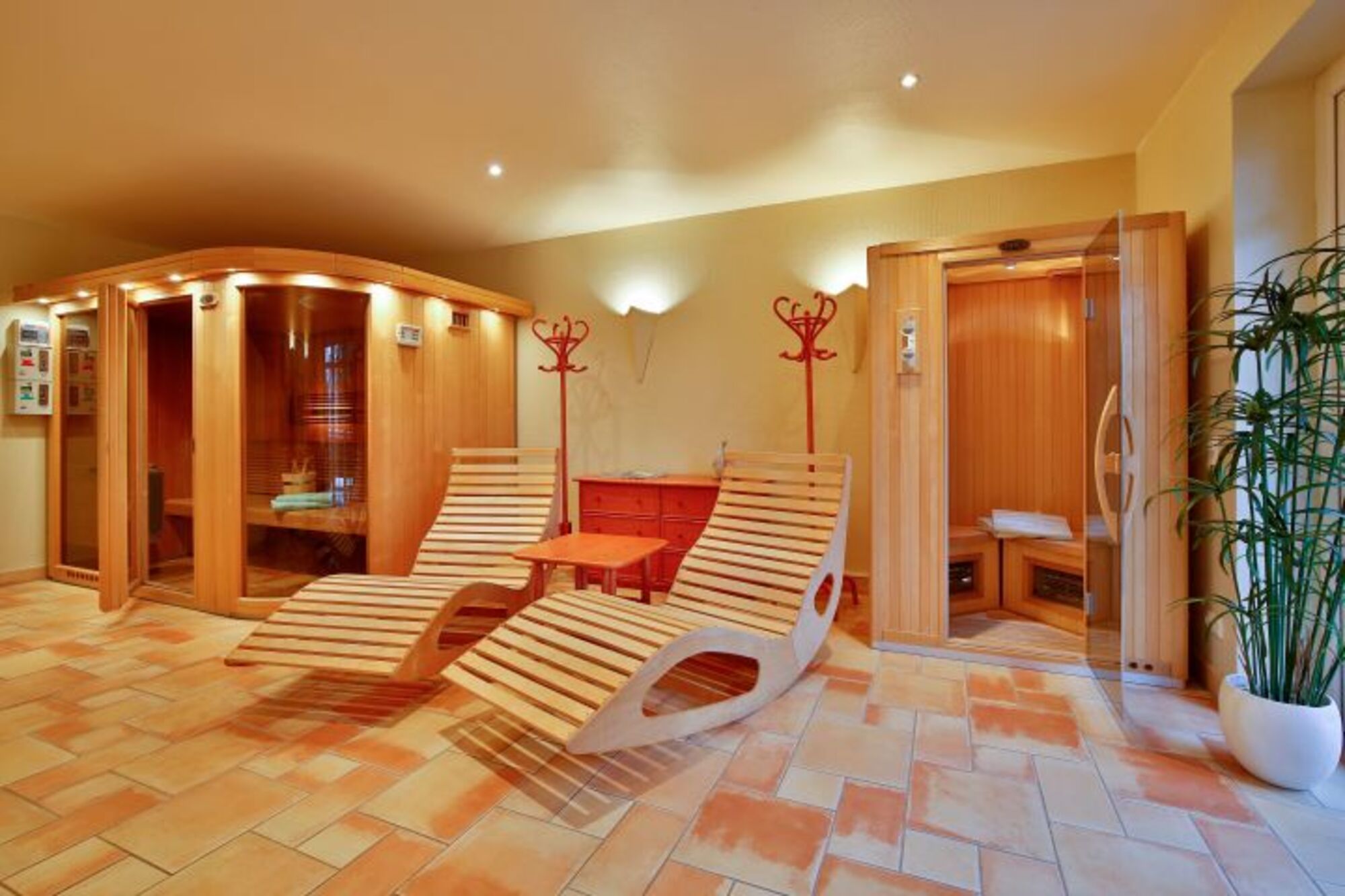 Es gibt eine Sauna und eine Wärmekabine im Haus mit Münzautomaten.