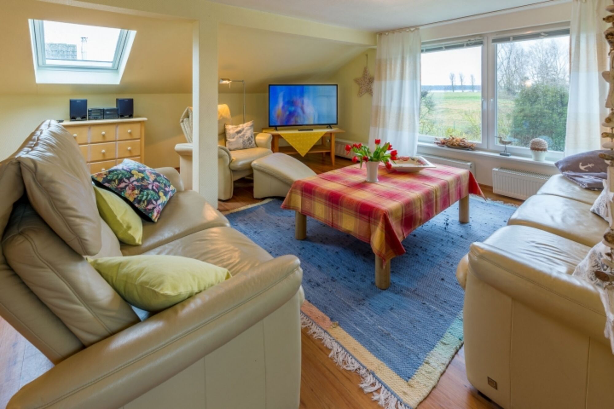 Sie schauen aus dem Wohnzimmerfenster über die Felder bis zum Flüsschen Barthe. Bresewitz liegt direkt vor der Meiningenbrücke und ist nur