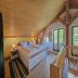 Über eine Holztreppe gelangen Sie nach oben in den gemütlichen Schlafbereich mit großem Bett (180x200), Kleiderschrank, Sideboard und Flachbildfernseher.