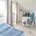 Dieses hochwertig eingerichtete Ferienhaus Luv verfügt im EG über einen Schlafraum, eine ebenerdige Dusche mit WC, ein Wohnzimmer mit offener Küche und zwei Schlafräume, eine Dusche mit Doppelwaschbecken und WC im OG. Alle Schlafräume sind mit Vorhängen und Plissees ausgestattet.