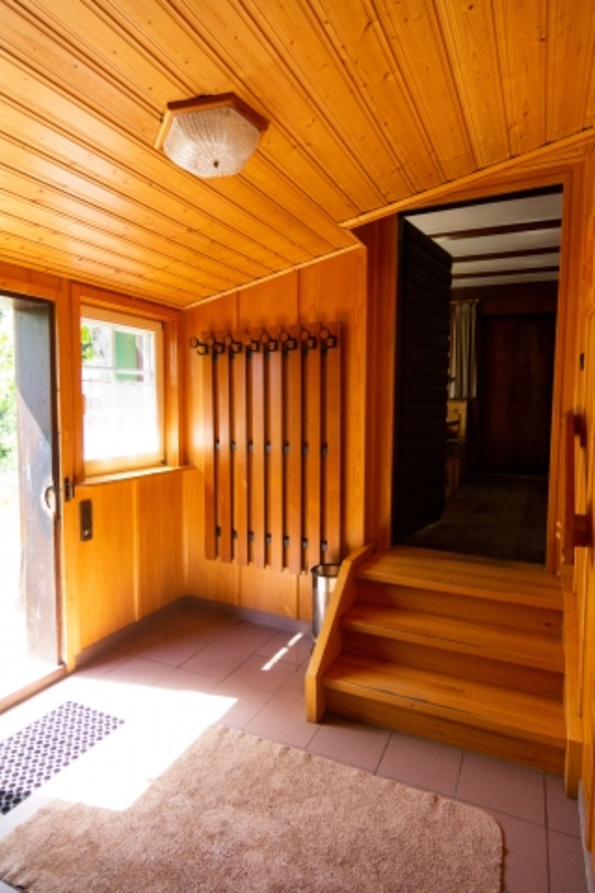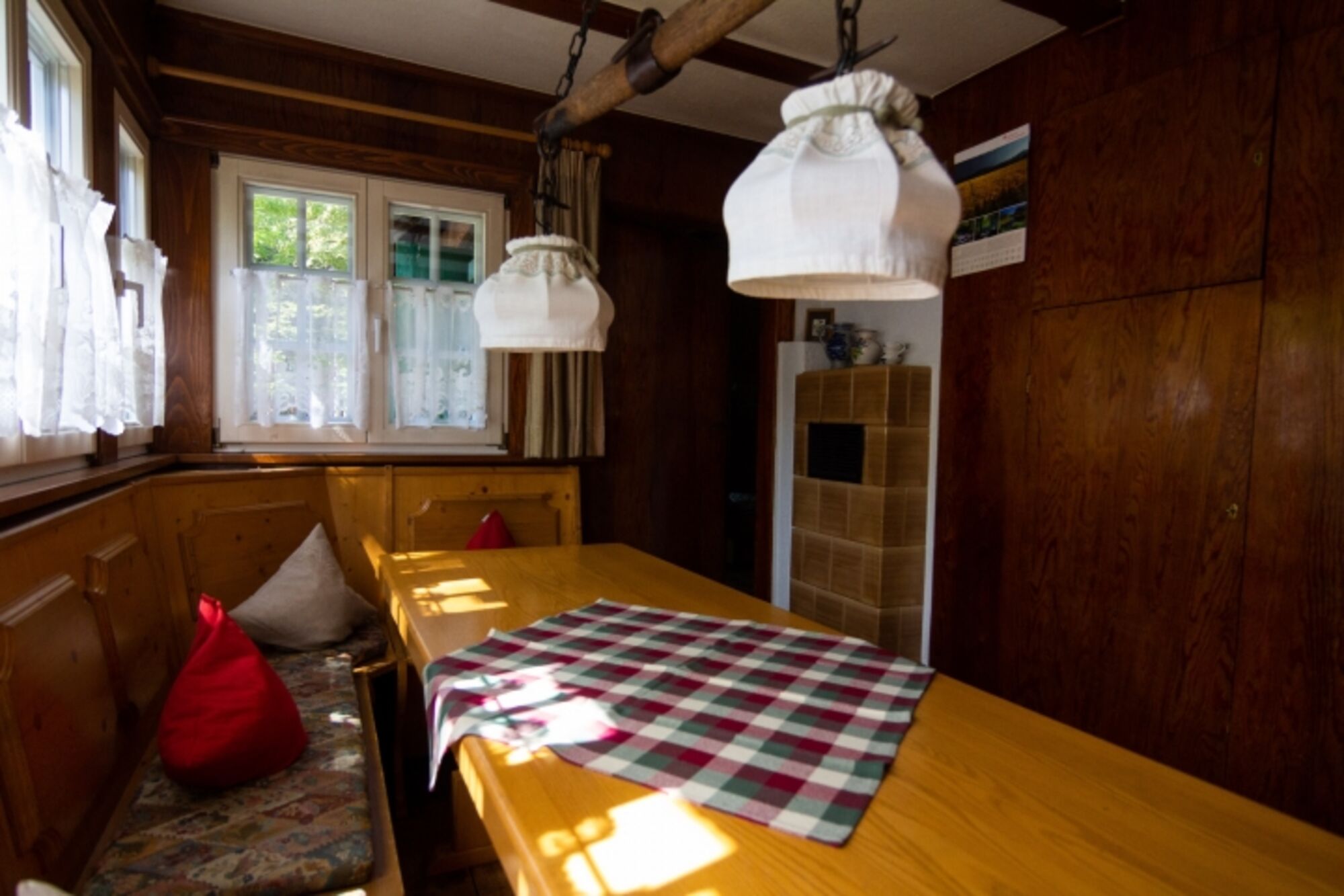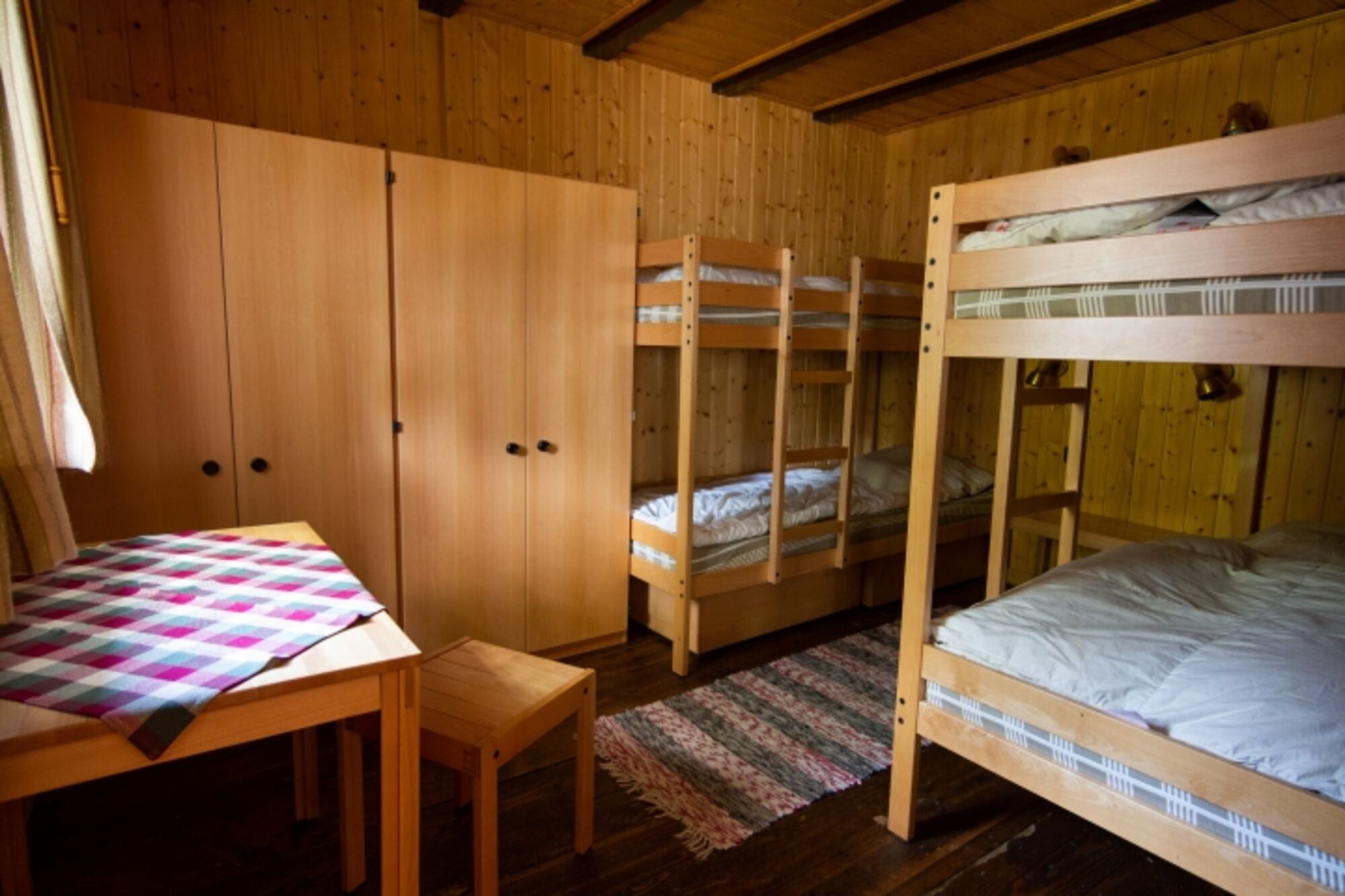 Das Sägerhäusle hat 4 Schlafräume, teils Stockbetten und unter dem Dachspitz auch Einzelbetten. Eine voll ausgestattete Küche ist vorhanden, so dass man sich auch selbst verpflegen kann.