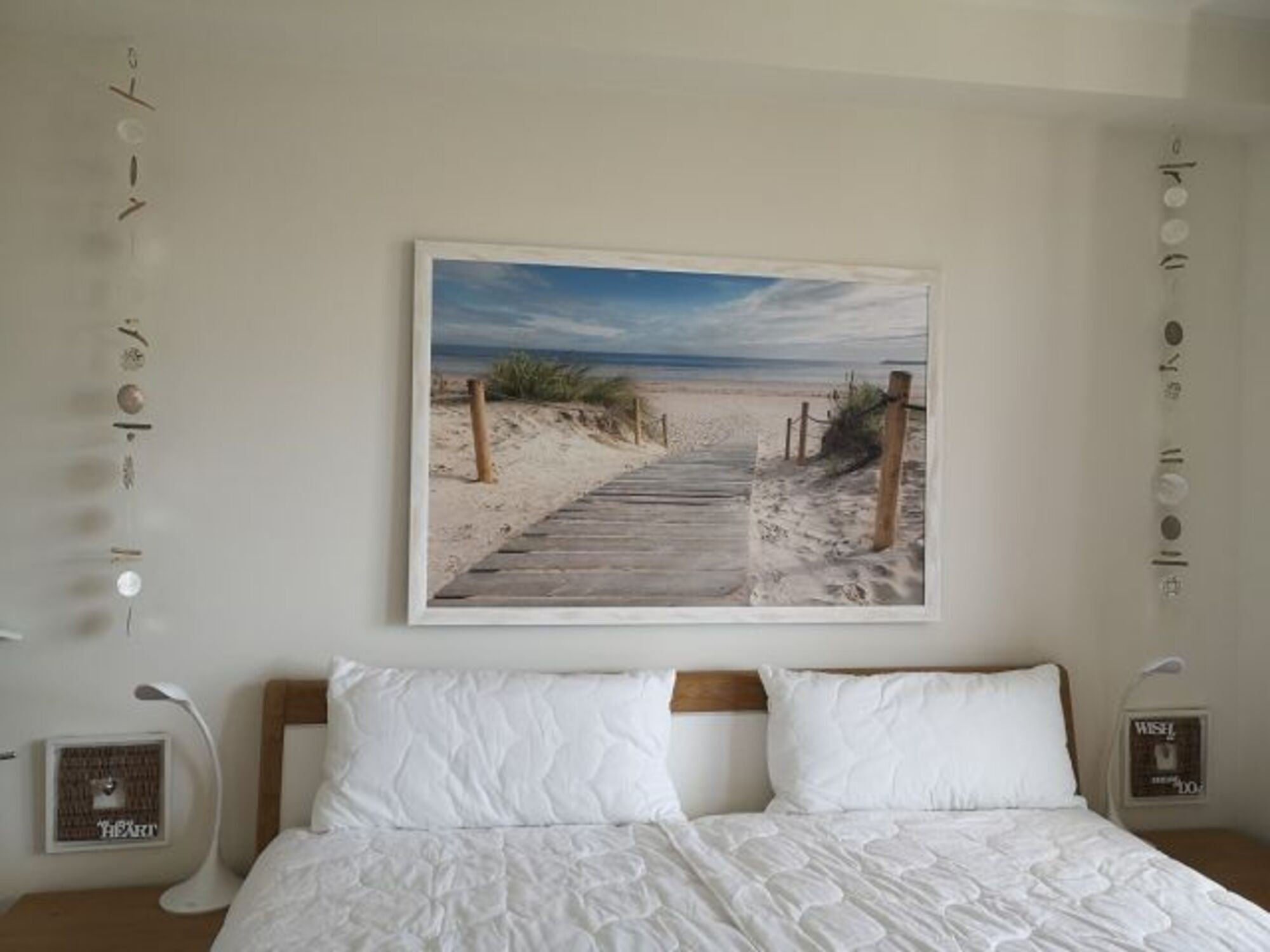 Zwei Schlafzimmer gehören zu dieser Unterkunft. Das große Schlafzimmer verfügt über ein komfortables Massivholz-Doppelbett (180x200 cm) mit hochwertigen Matratzen, einem Fernseher und direktem Zugang zum Balkon mit Meerblick. Das kleine Schlafzimmer/Kinderzimmer verfügt ebenfalls über zwei Schlafplätze (jeweils 80x190 cm).