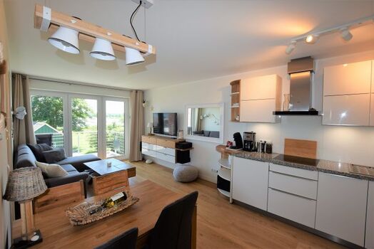 Ostseeliebe unten, sonnige Ferienwohnung mit Blick ins Grüne