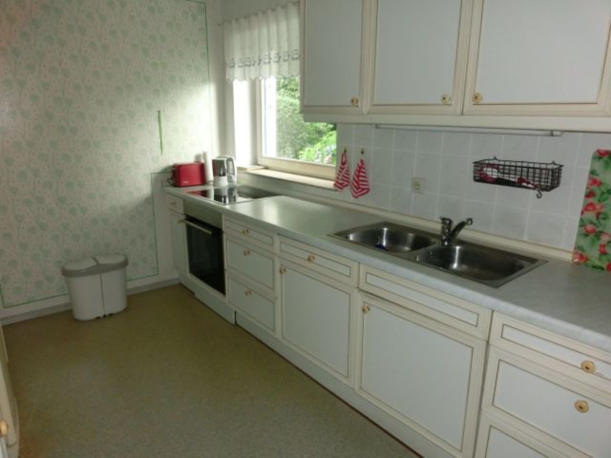 Cerankochfeld, Kühlschrank mit Gefrierfach, Mixer, Korkenzieher / Flaschenöffner, Gewürze (Salz, Pfeffer, Zucker), Geschirrhandtücher, Mülltüten