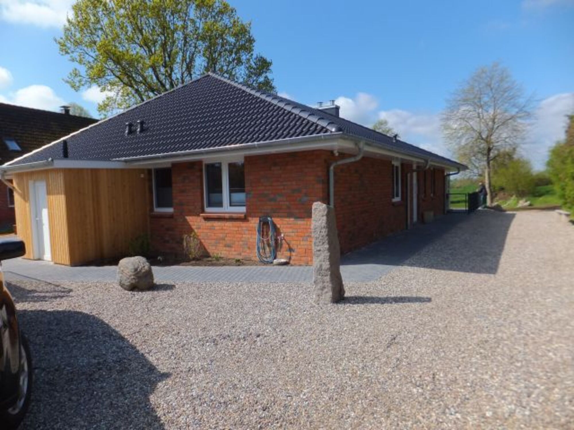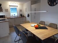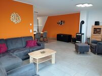 Es erwartet Sie ein großes Grundstück 2400m² und eine perfekt aufgeteilte 98 m² große Haushälfte, die für bis zu 5 Personen ausgelegt ist. Ein Schlafraum mit Doppelbett, ein Schlafraum mit einem Einzelbett und einem Etagenbett, welches auch für Erwachsene gut geeignet ist, einem Duschbad, einem zusätzlichen "Gäste"-WC und einem großen Wohn-Essbereich inklusive Küche. Die Terrasse mit angrenzender Rasenfläche ist eingezäunt. Die dahinterliegende Wiese bietet der ganzen Familie und Vierbeinern viel Platz zum Spielen, zum Entspannen z.B. am Feuerplatz .