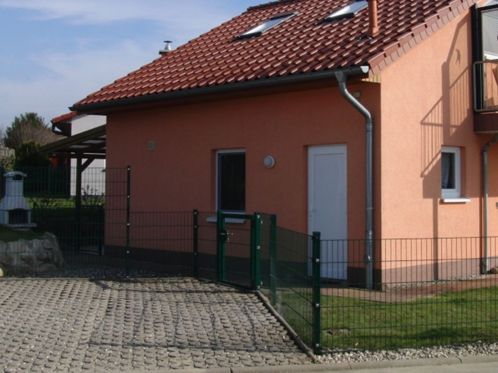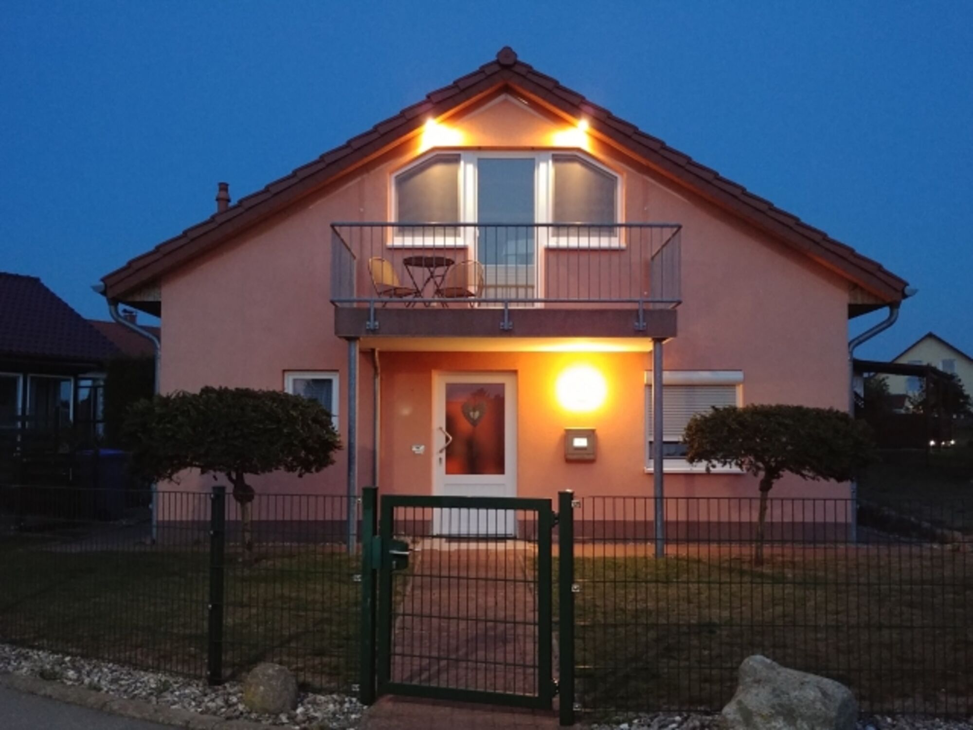 Komplett ausgestattetes Ferienhaus mit Erd- und Obergeschoss, Küche, Wohn*-, Ess-, 2 x Schlafzimmer, 2 Bäder ( Bad1 mit Dusche, Waschbecken und WC, Bad 2 mit Eckbadewanne, Waschbecken und WC ), überdachter, zusätzlich eingezäunter Terrasse und Balkon mit wunderbarer Aussicht auf das Salzhaff und die Ostsee. Grundstück mit Gitterstabmattenzaun ( Höhe bis ca. 1,50 mtr. ) eingefriedet. Großzügige Parkmöglichkeit ( 2 PKW-Stellplätze ) auf dem Grundstück außerhalb der Einzäunung. *Aufbettung durch Schlafcouch möglich.