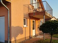 Mit Außentüre zum Balkon. Herrlicher Ausblick auf Ostsee und Salzhaff ( auch vom Bett aus ). Kleinkinderreisebett vorhanden. Doppelbett 1,60 x 2,00m, Kommode, Leselampe am Bett, Fliegengitter