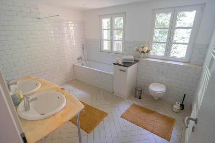 Die Villa Bergmann, ein historisches Herrenhaus, ermöglicht einen direkten Bezug zum Garten und zur Natur, eingebettet in einem großen, parkähnlichen Garten mit altem Baumbestand. Das Anwesen ist sehr ruhig gelegen und trotzdem zentral als perfekter Ausgangspunkt für ihre geplanten Freizeitaktivitäten. Oder Sie wollen gar nicht mehr weg und genießen den Garten, das Gezwitscher der Vögel, Ruhe in einem besonderen Ambiente.