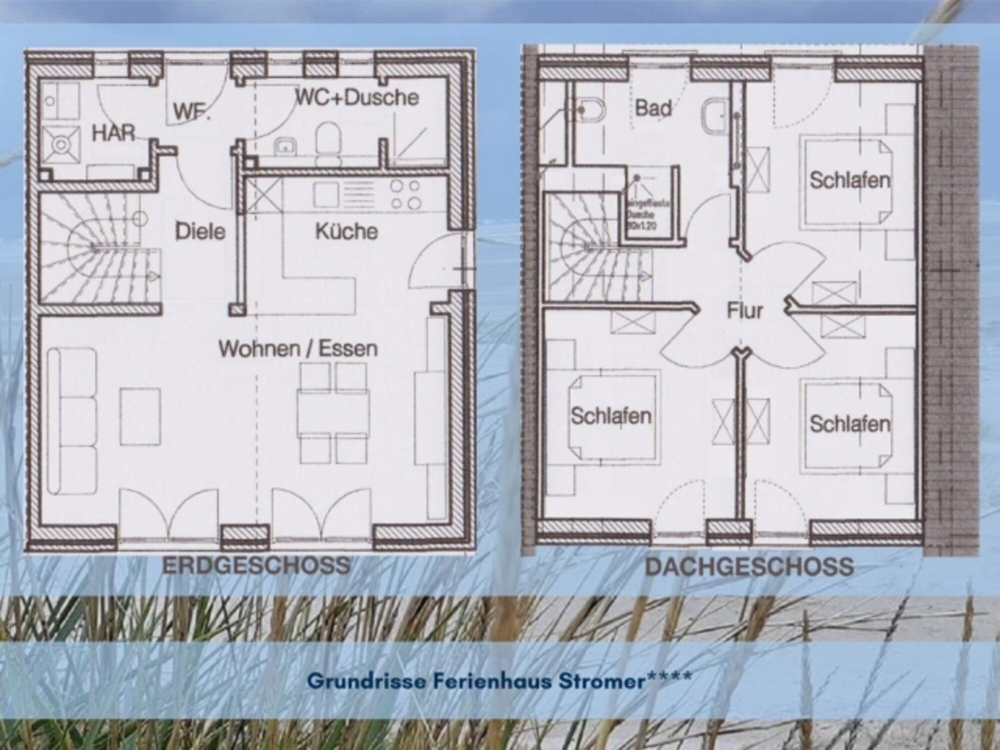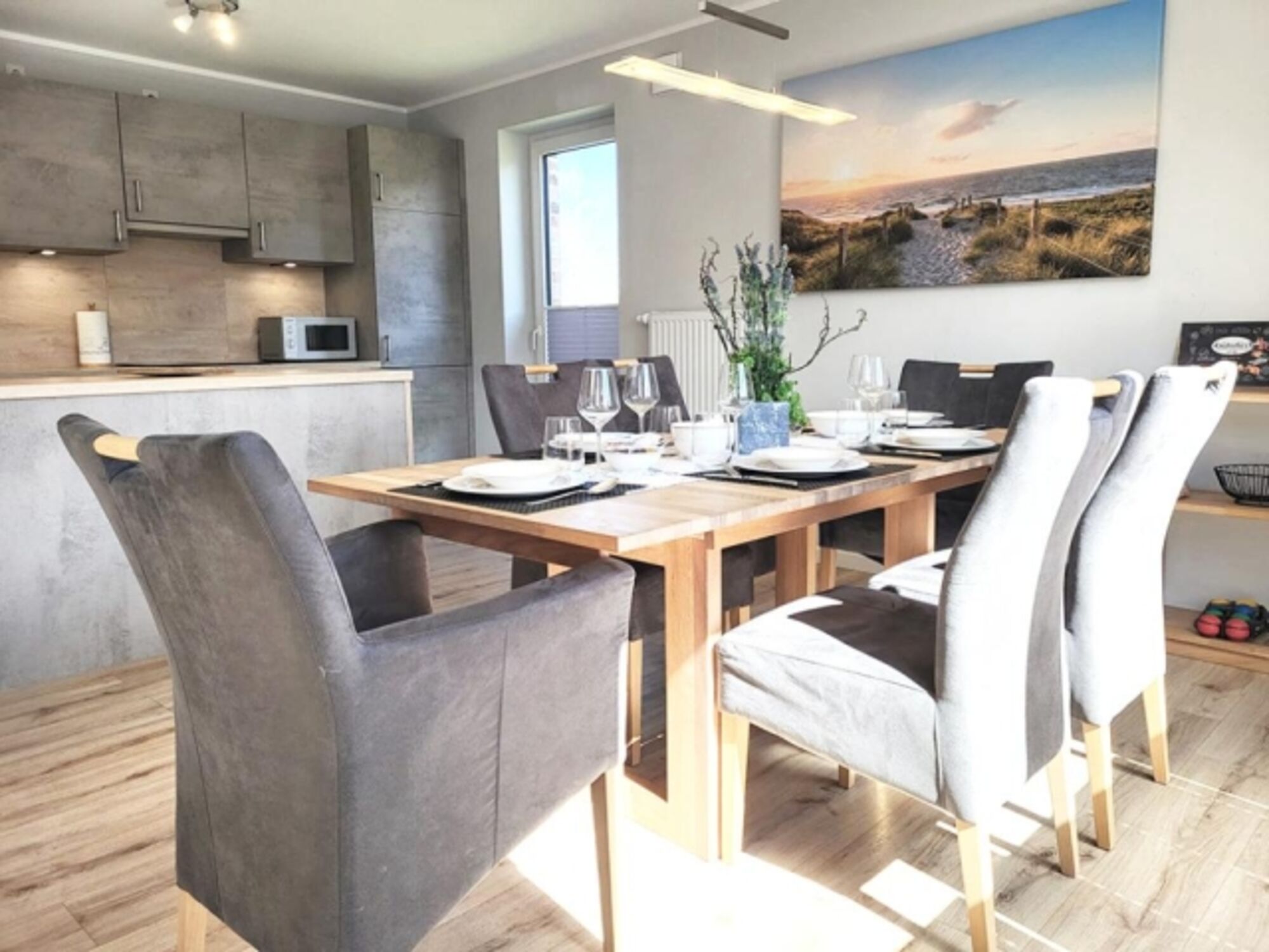 Ferienhaus: 90 m², max. 6 Personen, 3 Schlafzimmer, 2 Badezimmer, Waschmaschine, Trockner, WLAN inkl., 1 PKW-Stellplatz inkl., Bettwäsche & Handtücher inkl., Terrasse mit Gartenmöbeln, Strandkorb, max. 10 Hunde