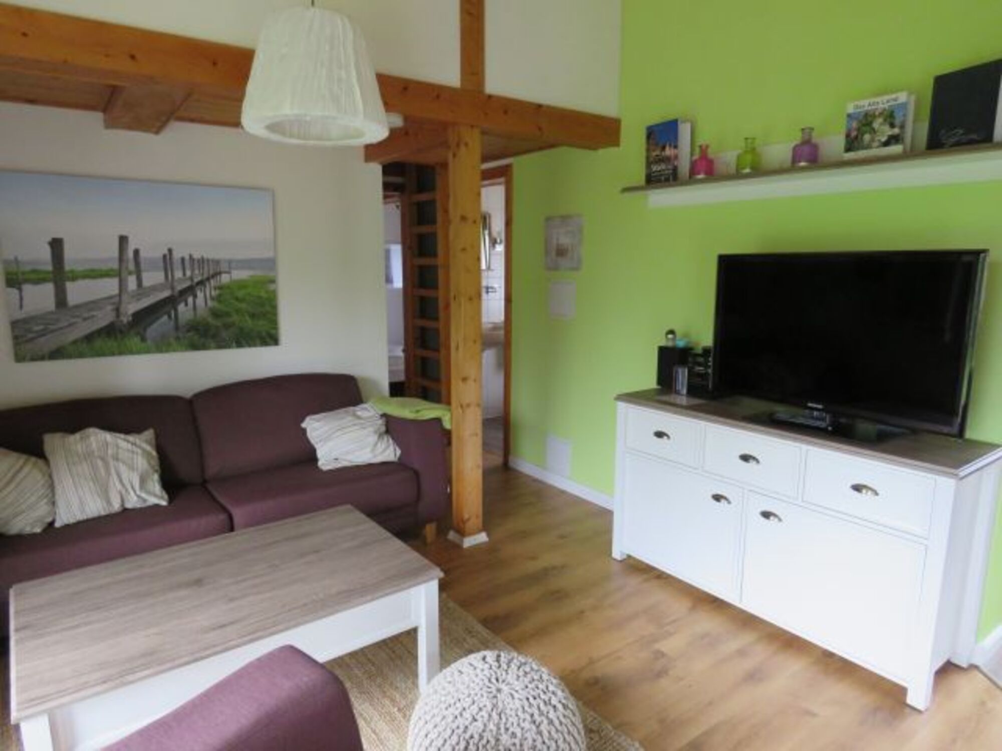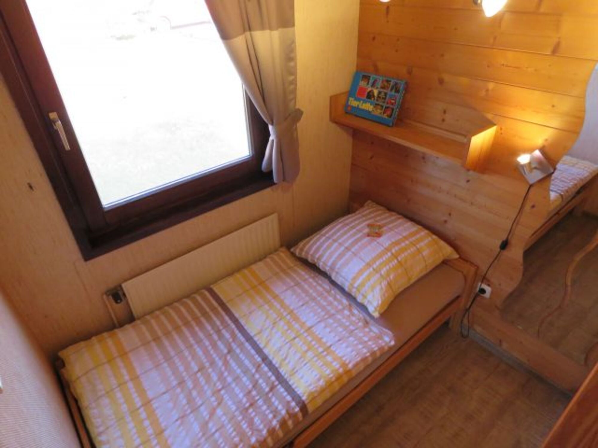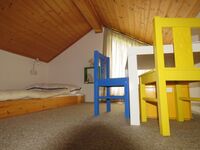 1 Schlafraum mit 2 Betten. 1 Schlafraum mit 1 Bett. 1 Schlafkoje mit 2 Matratzen im Giebel. Das Ferienhaus ist komplett für 6 Personen eingerichtet.