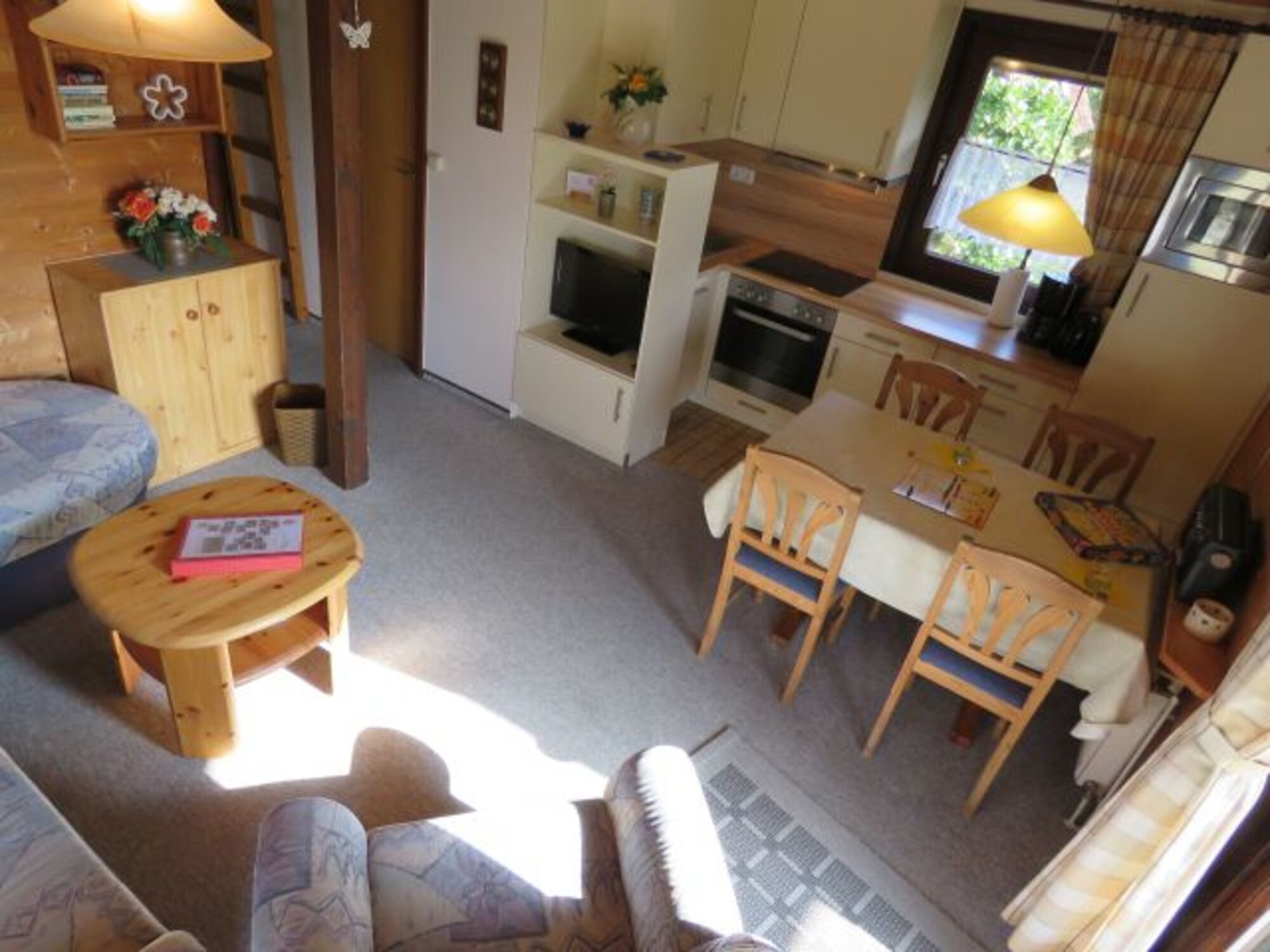 Ferienhaus im Feriendorf Altes Land, in einem alten Obsthof, direkt an der Elbe. Das Feriendorf verfügt über eine Verwaltung und eine sehr ansprechende Infrastruktur. Im Feriendorf Altes Land, direkt am Elbdeich, zwischen Hamburg und Stade. Mitten in einem alten Obsthof, umgeben von tausenden im Frühjahr blühenden Obstbäumen, wartet dieses schöne Ferienhaus auf Sie. Ca. 48 m² Wohn- und Nutzfläche, bis 4 Personen. Wohnraum mit Schlafcouch und Essecke.