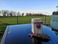 Eingebettet in Wiesen und Felder befindet sich die Wohnung auf einem idyllischen 3-Seiten-Hof mit freiem Blick auf die Ostsee.