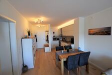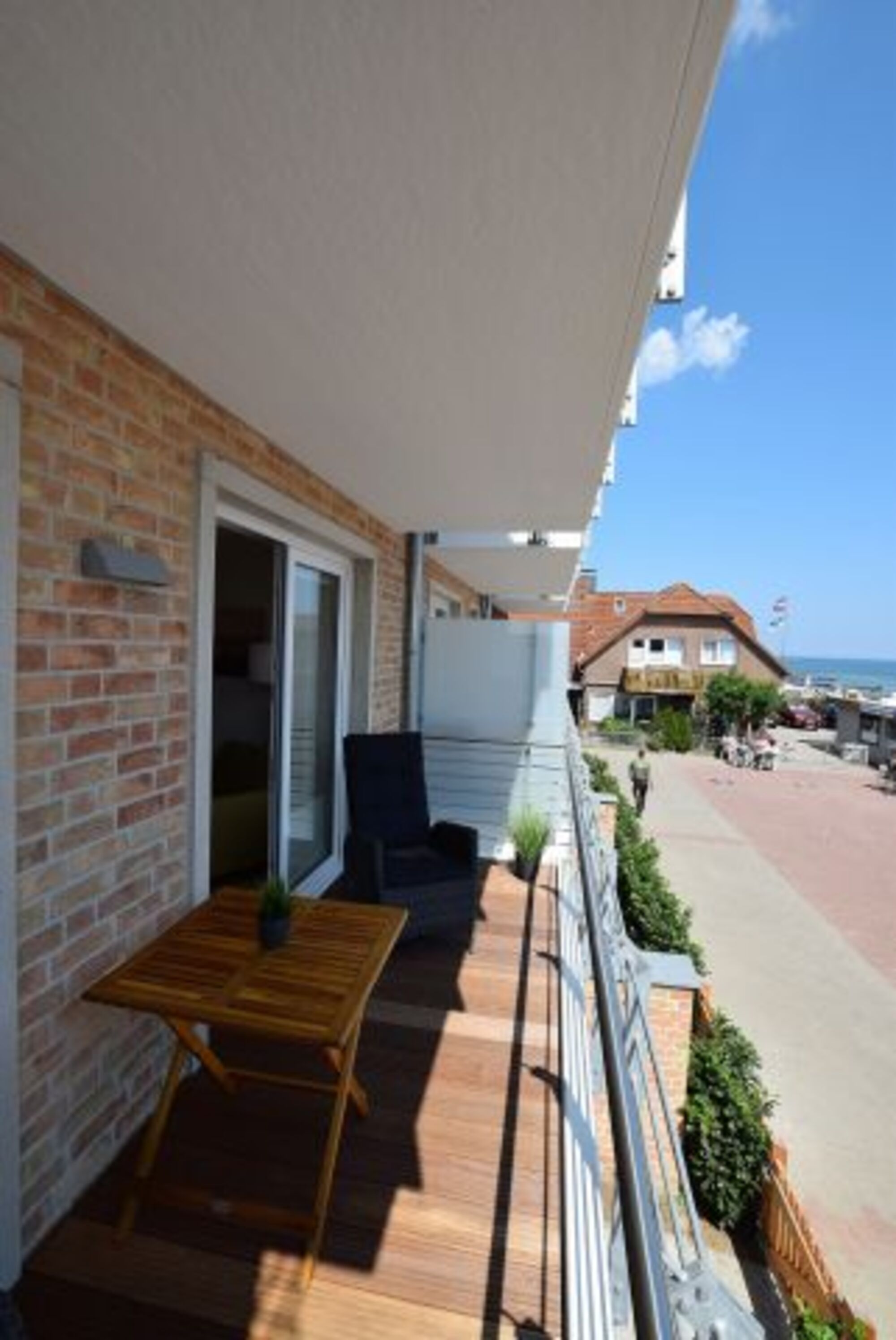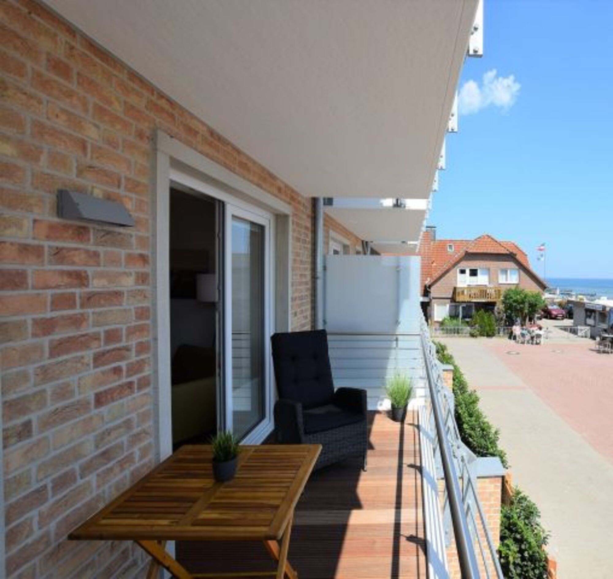 Direkt vom Wohnzimmer aus kann hier der große Balkon betreten werden. Zur Möblierung der Außenfläche finde Sie ein Tisch mit Stühlen. Dem gemütlichen Verweilen im Freien oder gemeinsamen Mahlzeiten an der frischen Luft steht also nichts im Wege. Der Blick fällt dabei direkt auf die wunderschöne Ostsee.