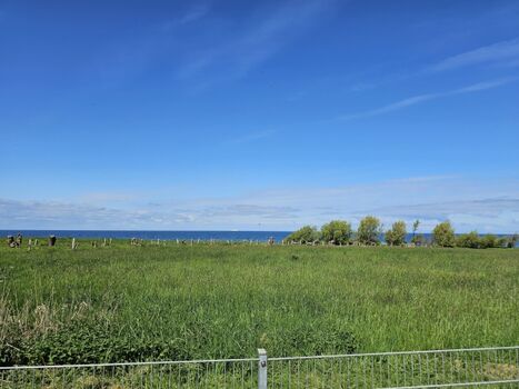 Eingebettet in Wiesen und Felder befindet sich die Wohnung auf einem idyllischen 3-Seiten-Hof mit freiem Blick auf die Ostsee.