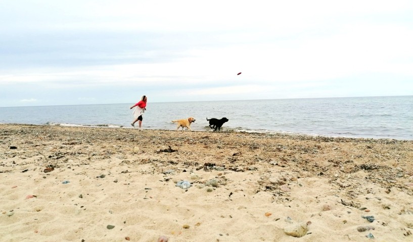 umzäunte Terrasse, sodass sich Ihr Hund innerhalb der Wohnung frei bewegen kann direkter Hundestrand umgeben von Wiesen und Feldern Hundeset (Decke, Näpfe, Leckerlie) Hundedecke kann mit nach Hause genommen werden ausgedehnte Spaziergänge (Wald, Wiese, Strand)
