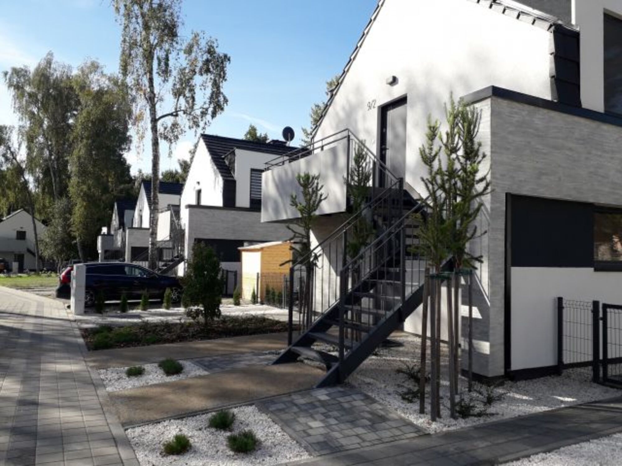 Sie haben Ihren eigenen PKW-Stellplatz vor dem Eingang/Garten. Auf unserem abgeschlossenen Gelände können Sie am Pförtnerhaus ein weiteres Auto sicher und kostenlos parken.