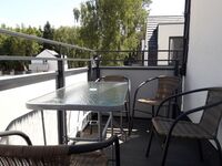 Die Wohnung verfügt sowohl über einen Balkon als auch über einen eigenen Garten (zur alleinigen Verfügung unserer Gäste) mit einer Fläche von 55 qm mit Terrasse und Grill. Sowohl auf dem Balkon als auch im Garten stehen Ihnen Gartenmöbel (Tische, Stühle, Sessel, Liege) zur Verfügung.