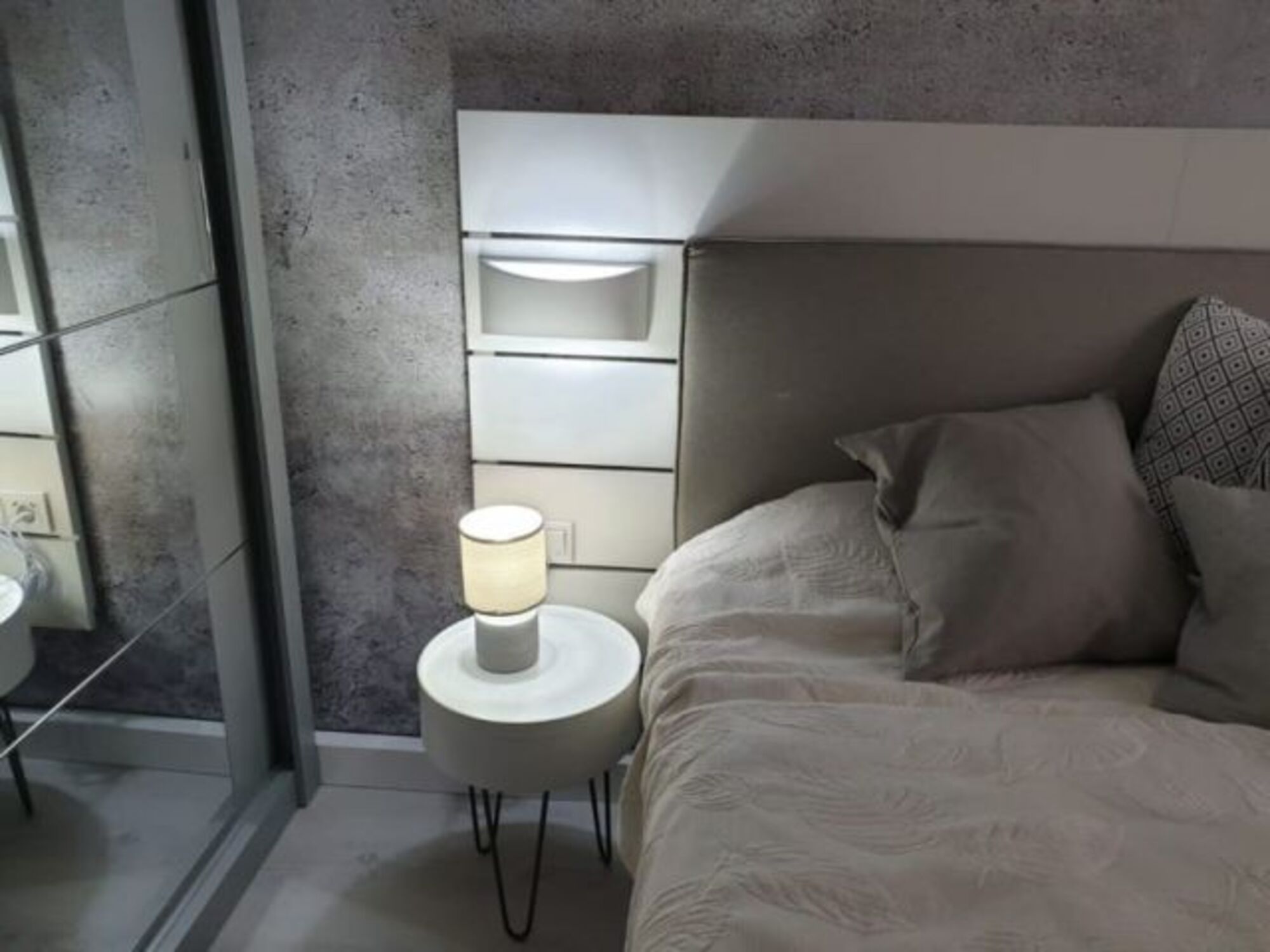 Doppelbett 1,60 x 2,00m, Boxspringbett, Wecker, Spiegel, Leselampe am Bett, Fliegengitter
