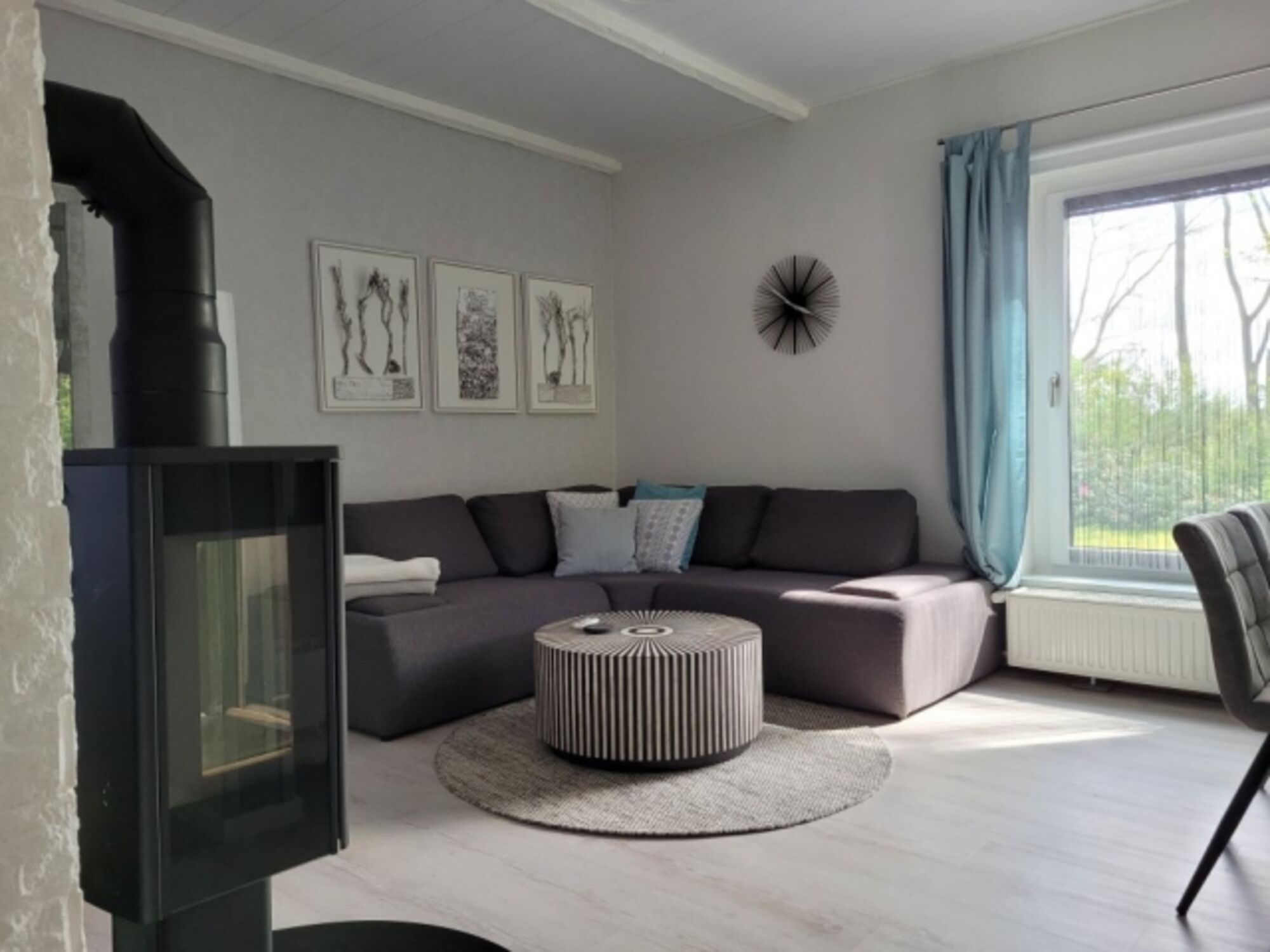 TV-Sat, SMART-TV, HDTV Flachbildschirm, DVD-Player, DVD bzw. Blu-Ray-Filme, Hi-Fi-Anlage mit Bluetooth, CD-Player, Bücher, Kaminofen, Eckcouch, 3er-Sofa, 2er-Sofa