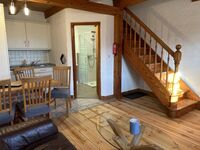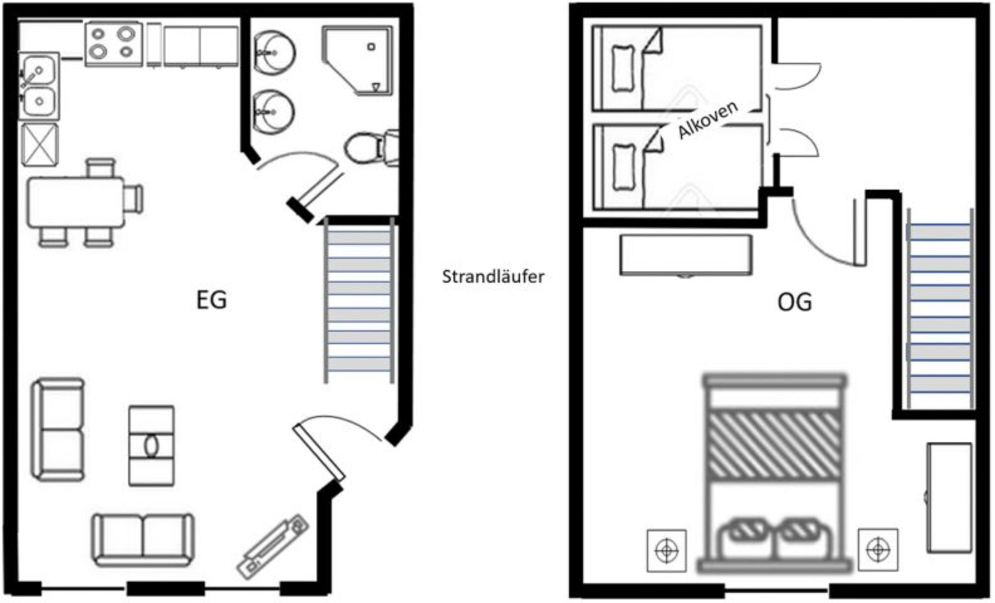 Die gemütliche Ferienwohnung Strandläufer bietet ausreichend Platz für einen erholsamen Urlaub. Starten Sie in den Tag mit einem entspannten Frühstück im Parterre in dem offenen Wohn/Essbereich. Das Bad im Erdgeschoß wurde in 2023 komplett neu gemacht. Zur Nacht kann man sich in das obere Stockwerk in das Schlafzimmer mit kuschligem Doppelbett zurückziehen. Die Kinder fühlen sich in dem Doppelalkoven, der sich direkt vor dem Schlafzimmer befindet, wohl.