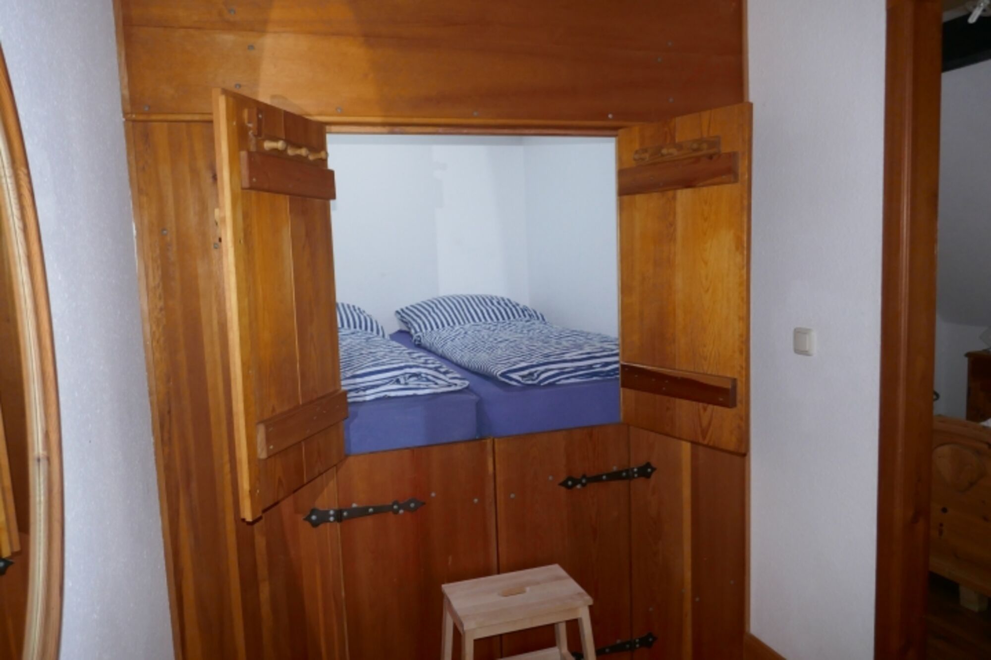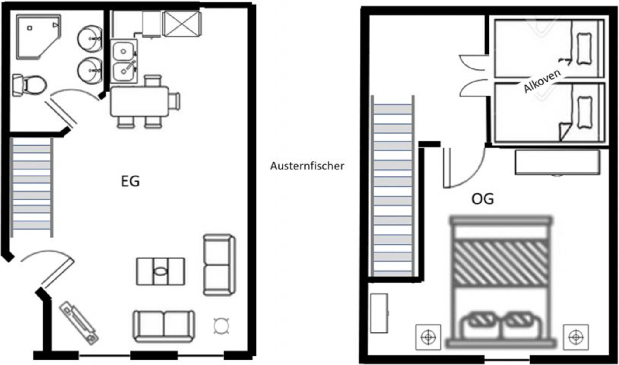 In der Ferienwohnung Austernfischer findet man in der oberen Etage ein ruhiges Schlafzimmer mit Doppelbett für einen erholsamen Schlaf. Direkt vor dem Schafzimmer schlafen die Kinder in dem Alkoven (entspricht in der Größe einem normalen Doppelbett). Im Parterre bietet der gemütliche Wohn/Essbereich viele Möglichkeiten zum Entspannen, Lesen, Spielen, Fernsehen und zum gemeinsamen Essen. In 2023 haben wir für Euch das Badezimmer komplett neu gestaltet. Anfang 2025 haben wir die Ferienwohnung frisch renoviert.