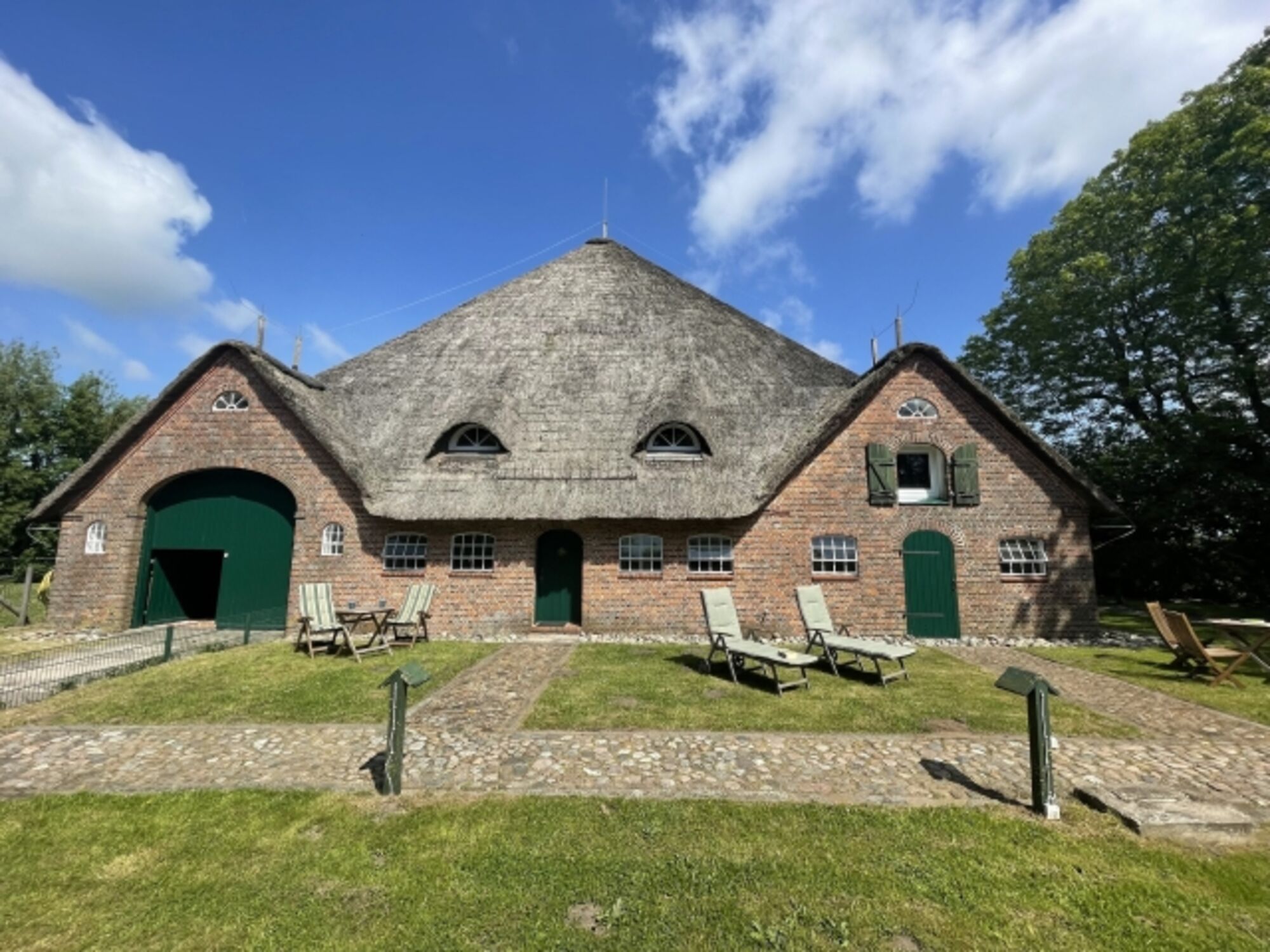 Auf dem 10000 qm großen Grundstück gibt es ausreichend Raum mit Terrassen, Sitz- und Liegemöglichkeiten, Kinderspielplatz und einer großen umzäunten Hundewiese. Die große Lohdiele bietet Platz zur Aufbewahrung eurer Sportgeräte und für Spaß und Spiel.
