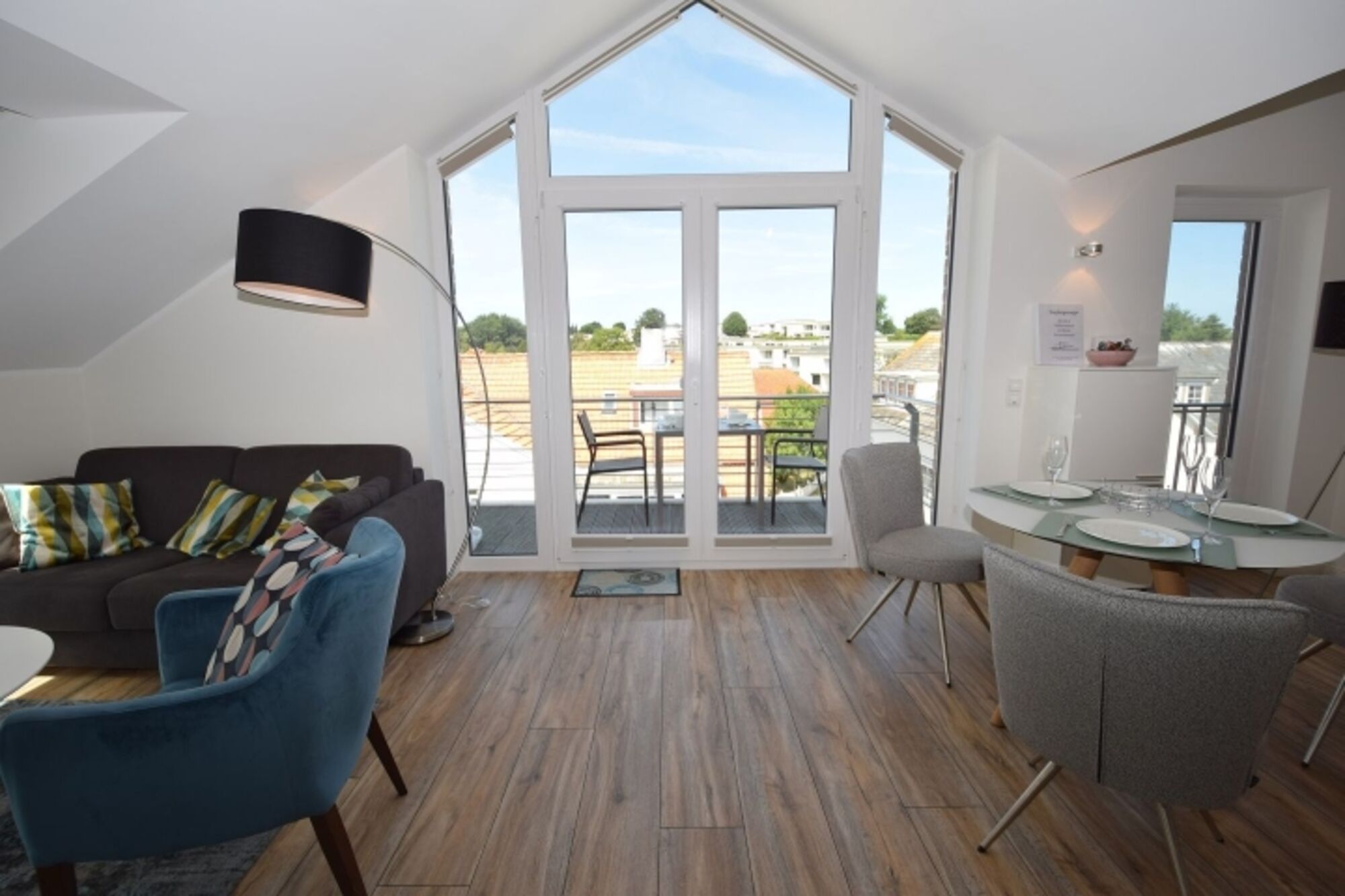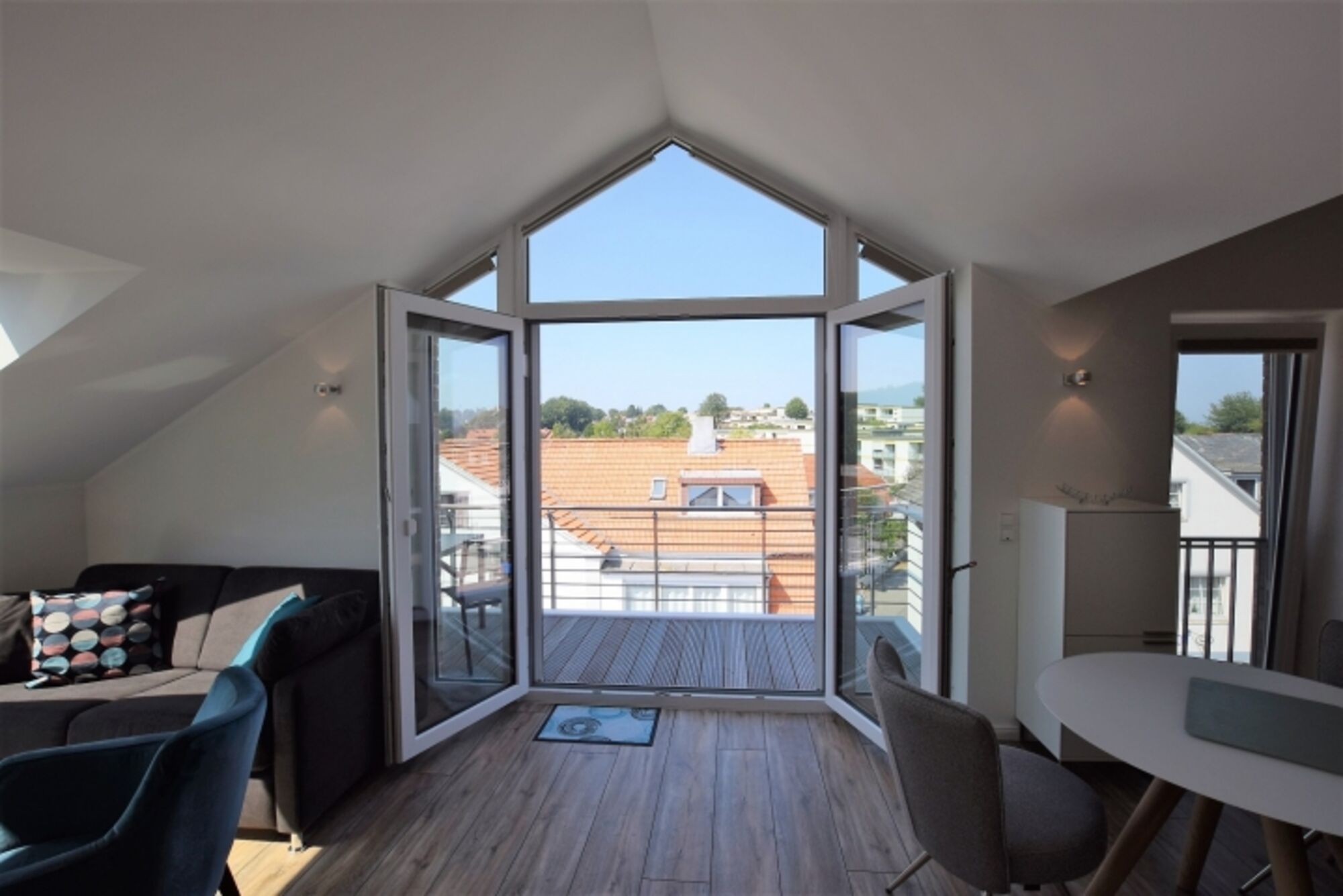 Selbstverständlich stehen Balkonmöbel bereit, welche das Verweilen im Freien besonders komfortabel machen.